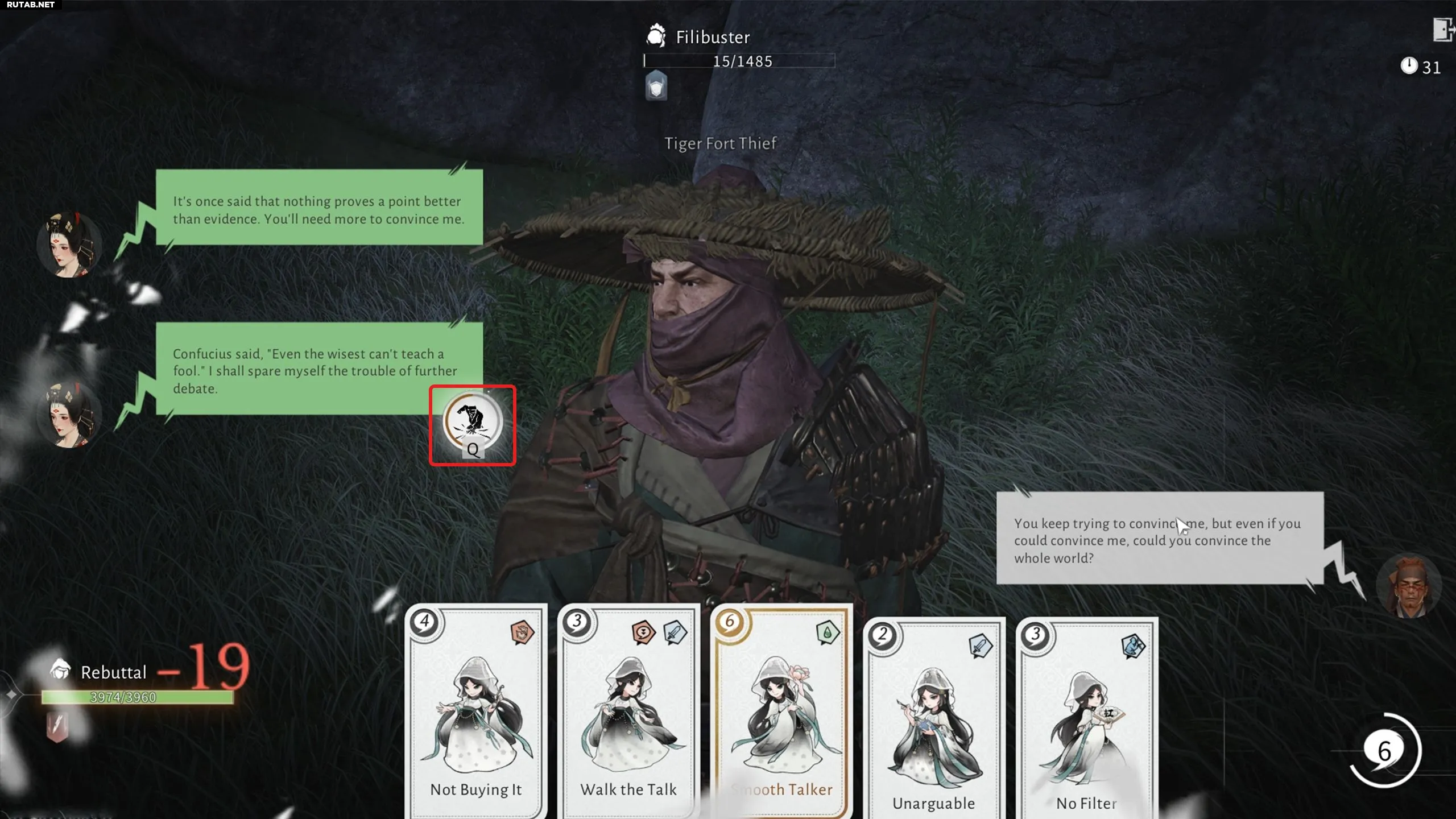Большинство диспутов можно переиграть при поражении, так что не страшно, если вы решите отложить мини-игру. За победу дают награды: Эхо-нефрит и Интеллект. Также вы получите +100 очков расположения к побеждённому персонажу.