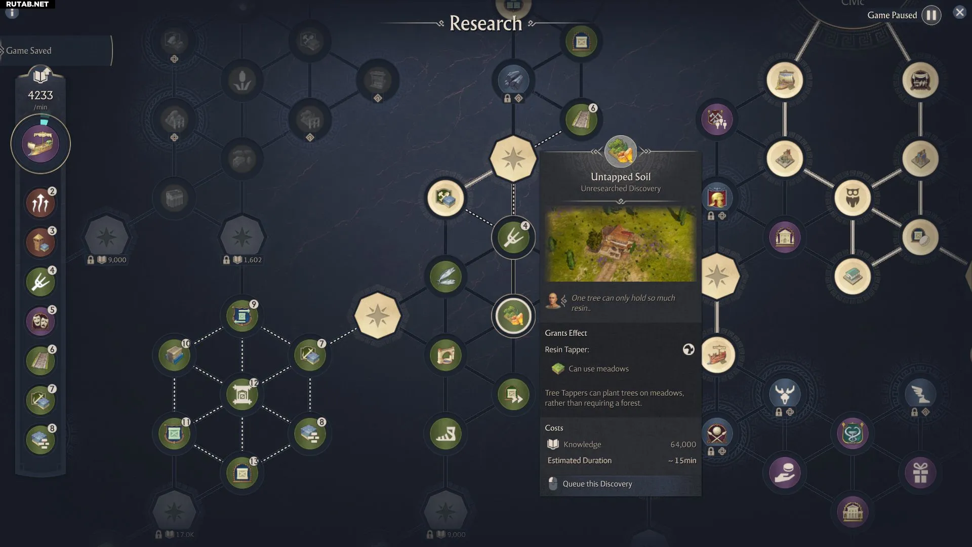 Если вы посадили деревья с помощью этих исследований, можно удалить здание и разместить другое, чтобы воспользоваться новыми посадками. Например, после исследования «Нетронутая почва» вы можете построить «Сборщика смолы» на лугу, и вокруг него вырастут деревья. Эти деревья останутся на месте даже после удаления здания «Сборщика смолы». Это позволяет разместить другие постройки, например «Дровосека», чтобы использовать посаженные деревья.