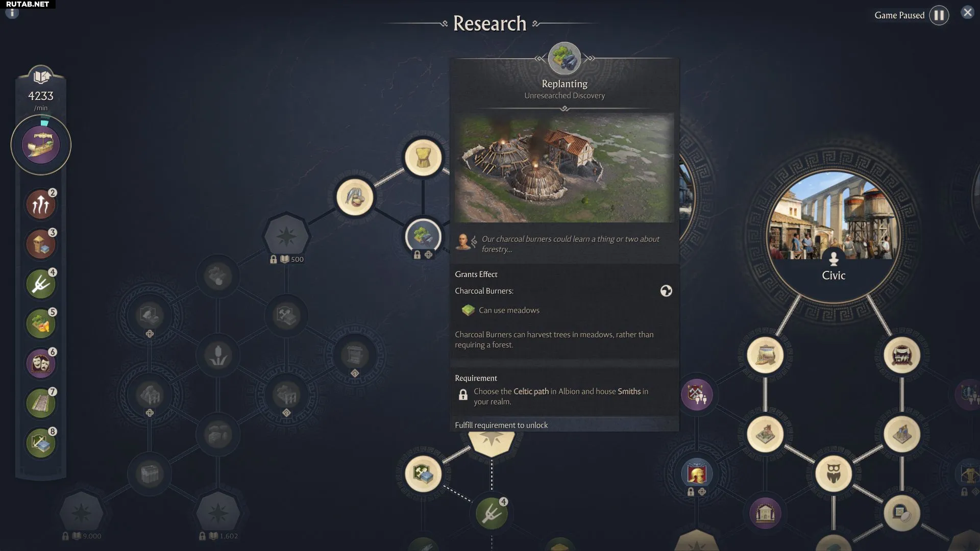 Исследования для посадки деревьев в Anno 117: Pax Romana