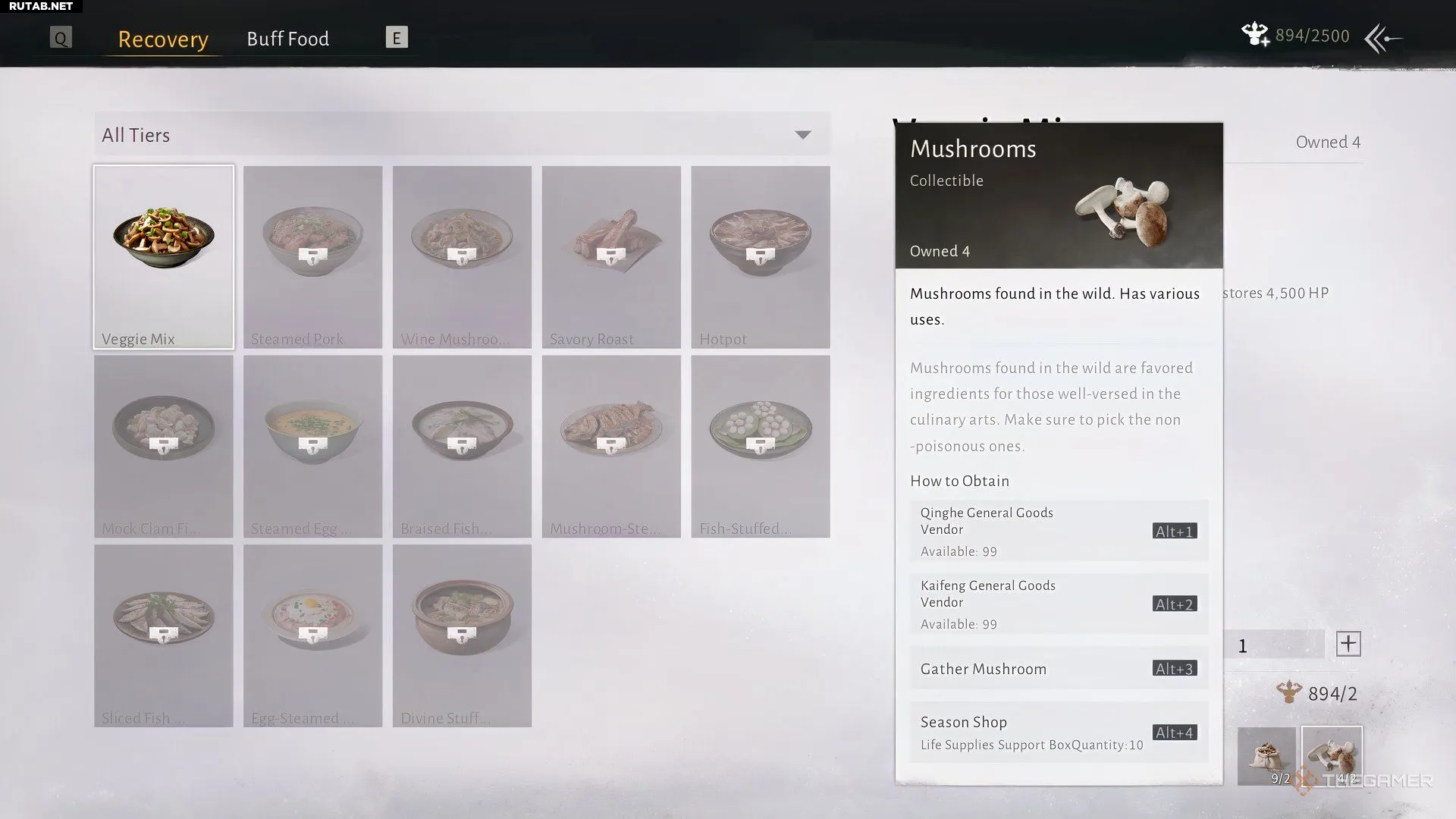 Ингредиенты варьируются от мяса животных до грибов и обычно легко находятся в окружающем мире. Если нужных предметов нет под рукой, на карте можно найти места для сбора, рыбалки или охоты.