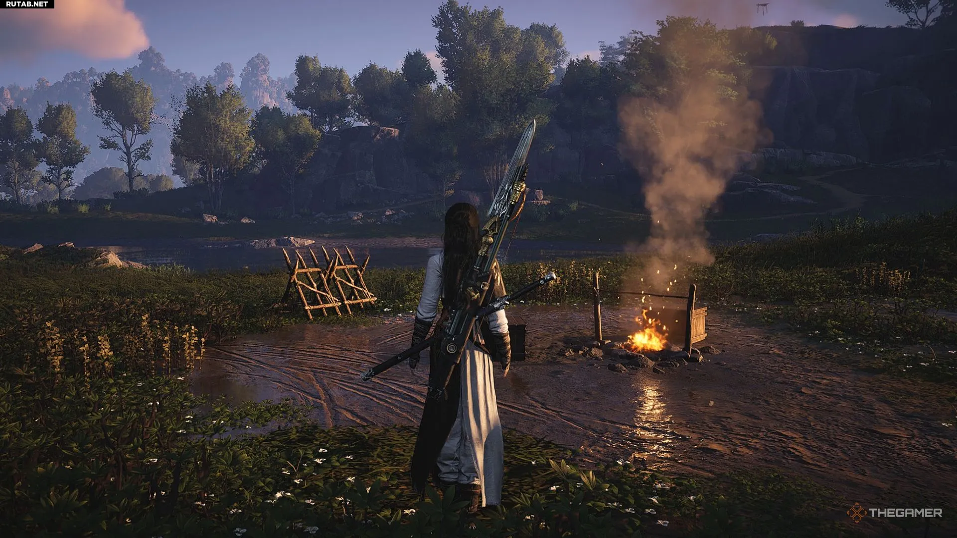 Когда всё необходимое собрано, достаточно подойти к костру с котлом/вертелом, и станет доступно взаимодействие для готовки. В этом меню можно приготовить блюдо или получить подсказку по поиску ингредиентов. Одни блюда просто восстанавливают здоровье, а другие дают мощные усиления, например, повышение атаки.