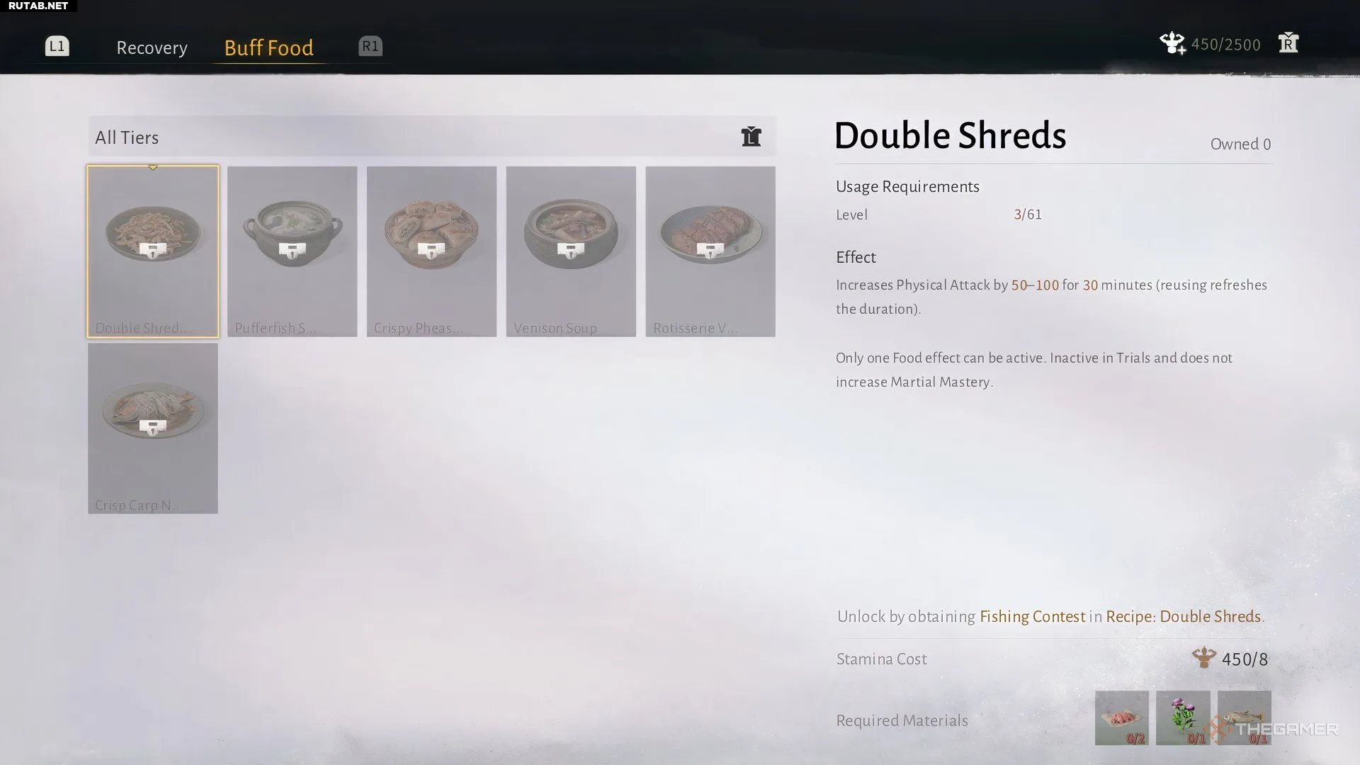 Хотя в Где встречаются ветра меньше рецептов, дающих усиления, их не менее полезно изучить. Эти блюда отображаются в отдельной вкладке при готовке. На данный момент в игре представлено шесть видов рецептов еды с усилениями.
