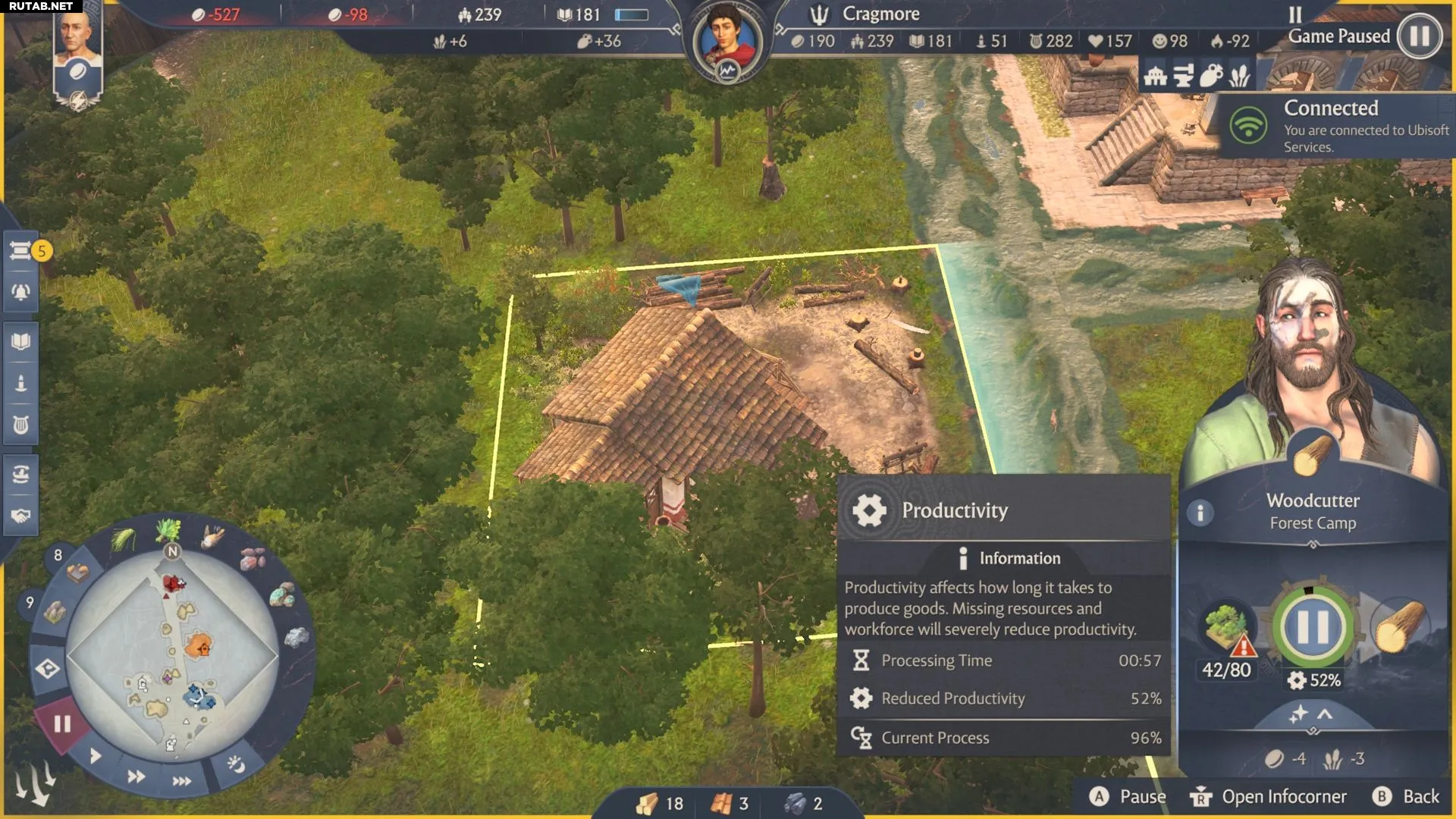 Чтобы пояснить подробнее: и у лесоруба, и у лесопилки цикл производства занимает по 30 секунд, поэтому они работают с одинаковым коэффициентом. Если их циклы не синхронизированы, потребуется дополнительное строительство для повышения эффективности.