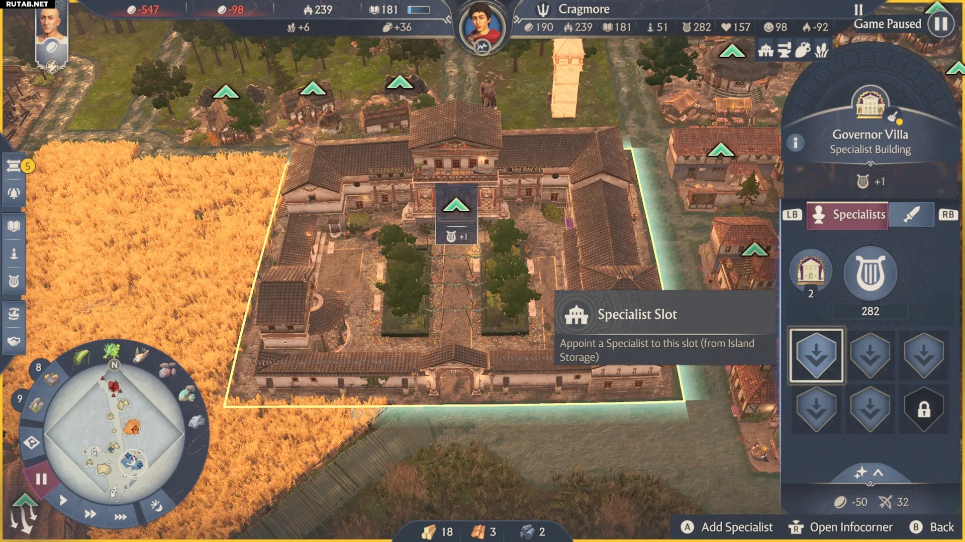Также здесь вы сможете использовать специалистов Anno 117: Pax Romana, поскольку Вилла имеет слоты для их размещения, что позволит вам воспользоваться предоставляемыми ими бонусами.