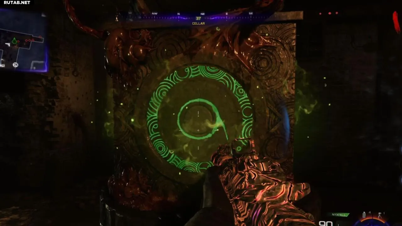 Теперь можно забрать Перчатку Некрофлюида, взаимодействуя с глазом на кубе, но сначала придётся пройти этап защиты и выживания.