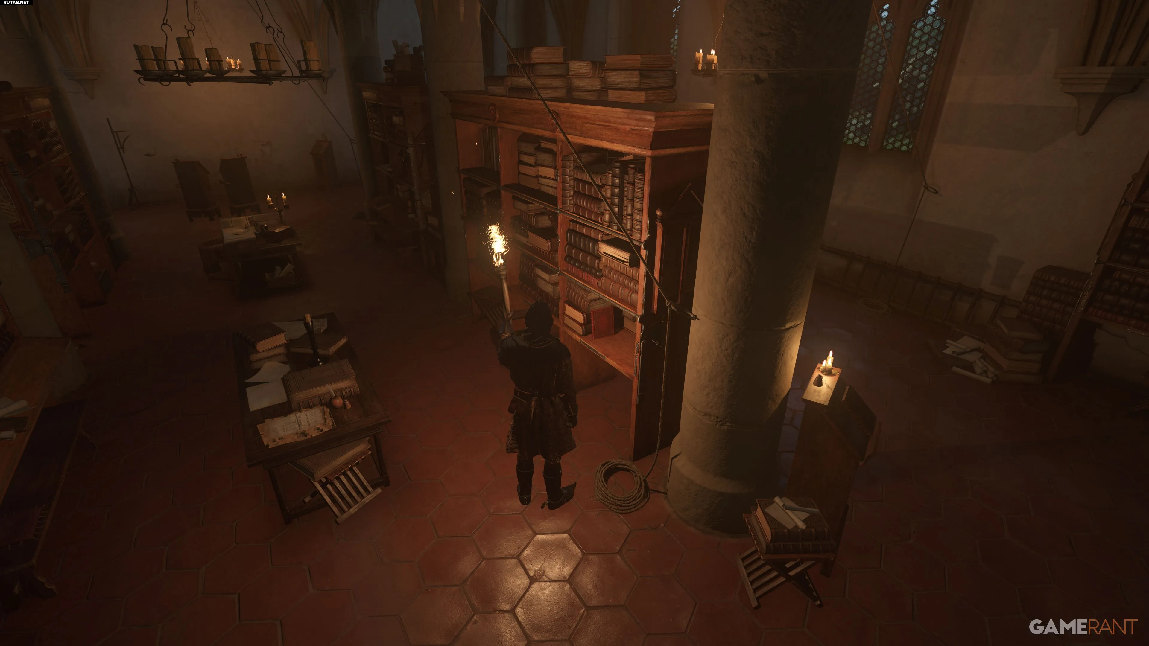 Игрокам нужно обыскать библиотеку, чтобы найти старую книгу Венделина. Поскольку большинство фолиантов нельзя взять в руки, отыскать нужный экземпляр бывает непросто.