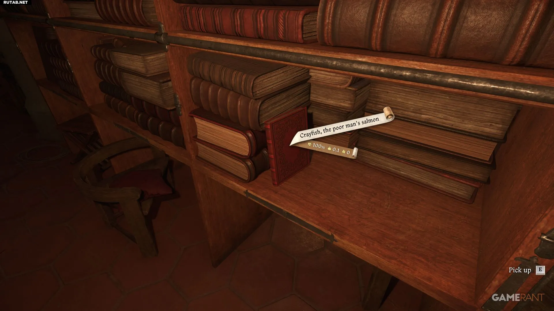 Найдя книгу, прочтите её, перелистывая все страницы, чтобы Генри считался ознакомившимся с ней. После этого появится новая цель — наловить раков. На последней странице указано, где их искать.