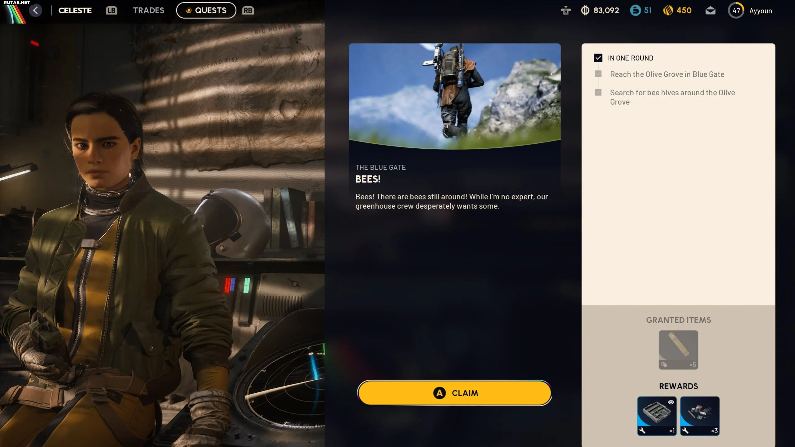 Вернувшись на «Сперанцу», откройте вкладку «Торговец» и поговорите с Селестой для завершения квеста. В награду за выполнение «Пчёл!» игроки получат 1x Продвинутый механический компонент и 3x Датчика.