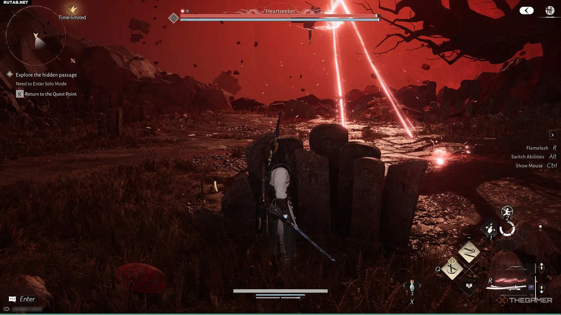 Когда вы опустошите первую полосу здоровья Сердцееда, она переместится в центр арены и начнет заряжать свою косу красной молнией. Если не избежать этой атаки, вы мгновенно умрете. Чтобы спастись, спрячьтесь за одним из надгробий по краю арены и оставайтесь там до завершения атаки.