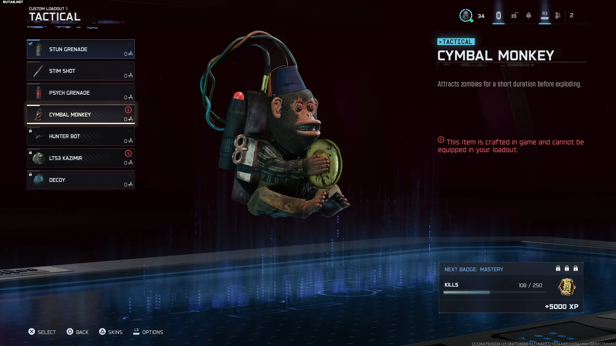 В таких случаях «Обезьянка с тарелками» (Cymbal Monkey) станет настоящим спасением. Она медленнее активируется, чем LT53 Kazimir, но доступна уже на 24 уровне и создаётся всего за 1000 Утиля. Вы можете носить 2 штуки, а пополнение запасов происходит при подборе «Макс. патроны», что гарантирует постоянную возможность отвлечь нежить и починить Ол' Тэсси.