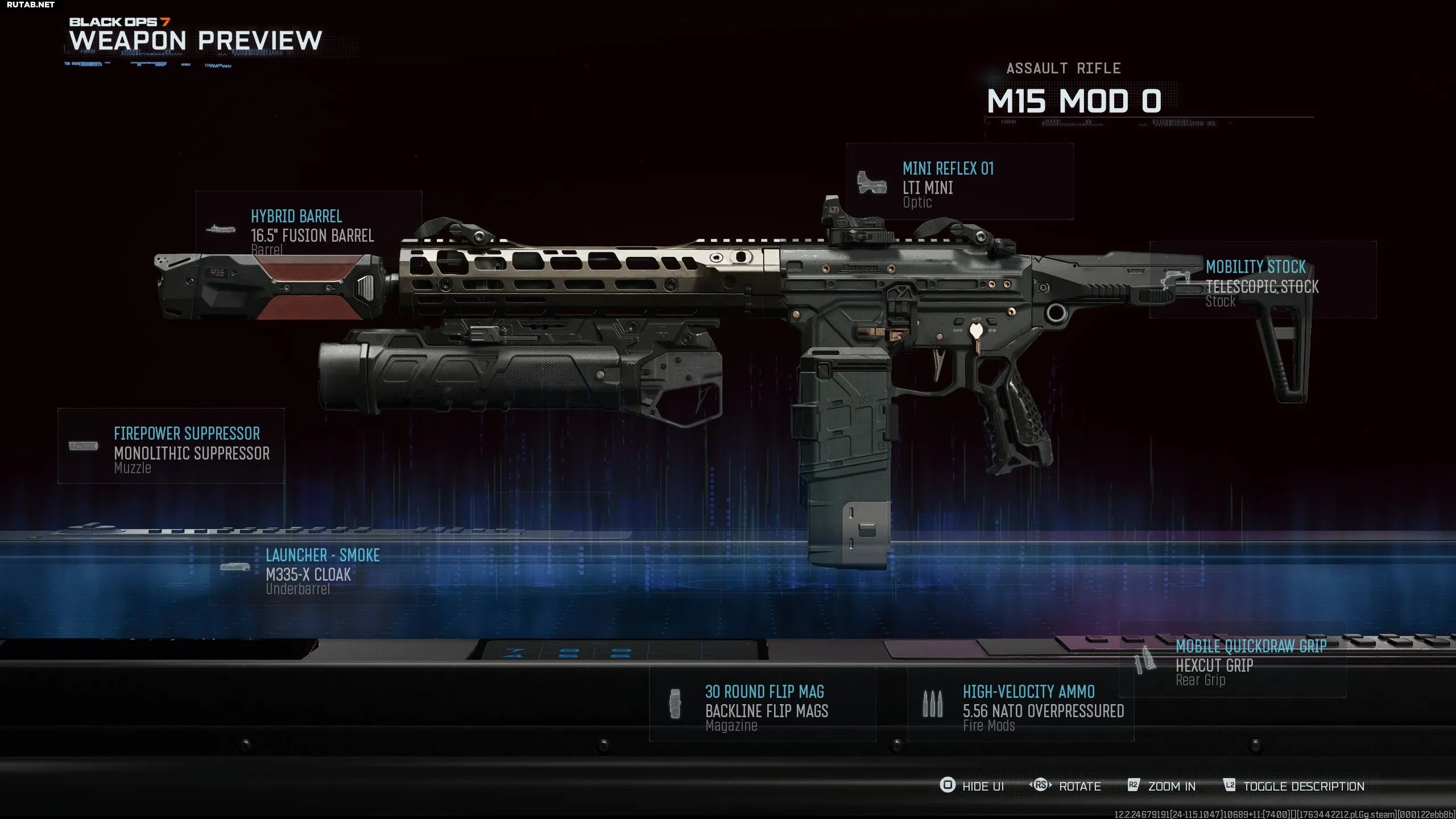 В качестве основного оружия мы выбрали M15 MOD 0. Это первая штурмовая винтовка, которую можно разблокировать, что делает её подходящей как для новичков, так и для опытных игроков. Важно сразу начать открывать для неё обвесы, поскольку некоторые из них критически важны. Мы перечислим все модули ниже (и приведём код для импорта сборки в игру), но прежде всего обязательно установите подствольный модуль M335-X Cloak, если планируете сражаться с боссом. M335-X Cloak запускает дымовые гранаты, скрывающие вас от врагов во время починки Ол' Тэсси (которая неизбежно взрывается). Вот используемые обвесы и причины их выбора: