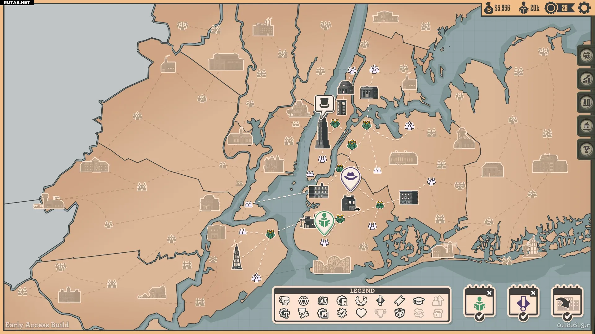 - Пост охраны — самый важный апгрейд, который нужно получить как можно скорее. Он защищает от мафиози и протестующих, способных замедлить ваш прогресс на несколько дней.