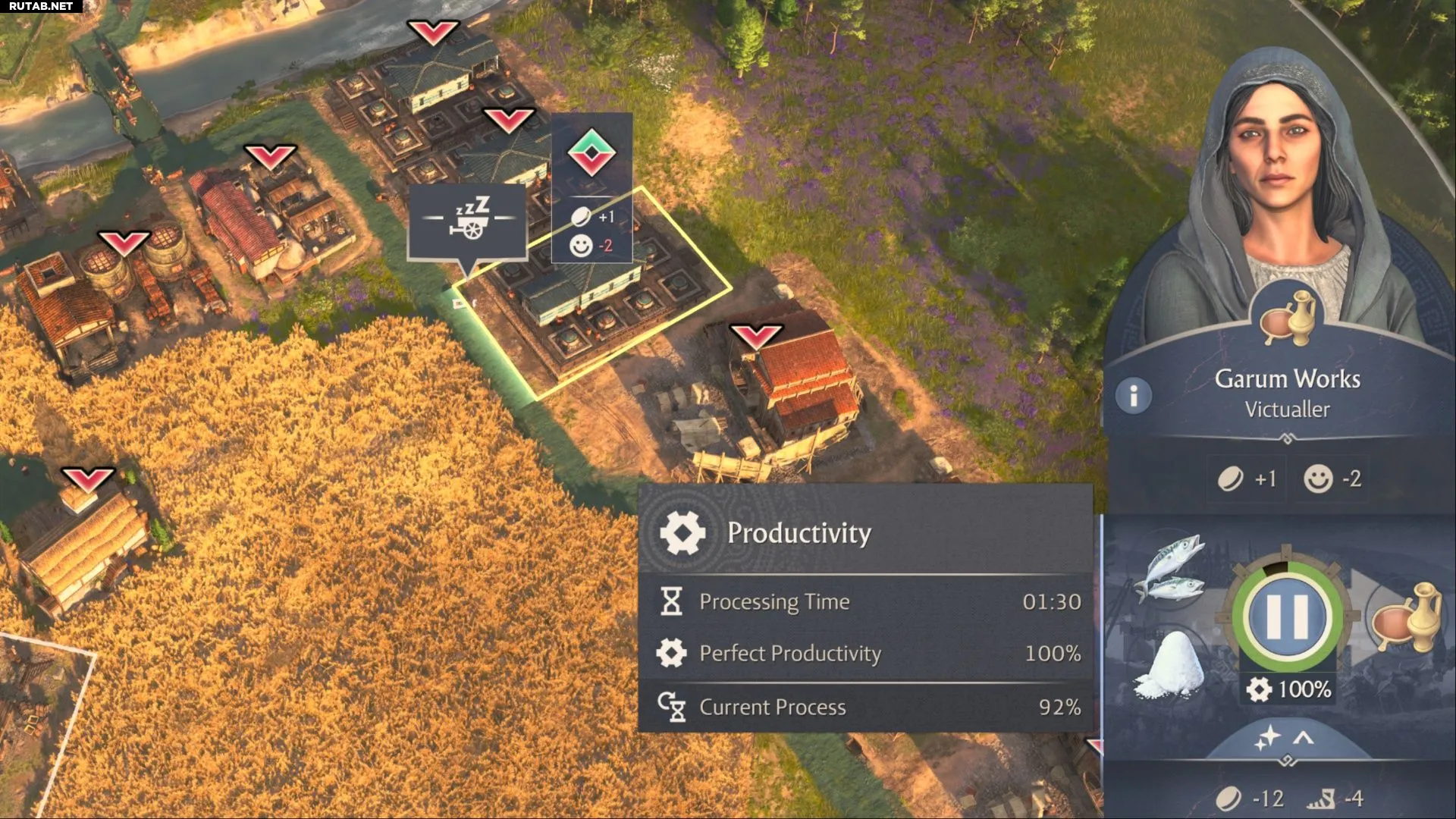Игроки могут построить по одному зданию каждого типа, но это приведет к задержкам в производстве гарума, поскольку все здания в цепочке имеют разное время обработки. Для достижения 100% эффективности необходимо правильное соотношение производственных мощностей.