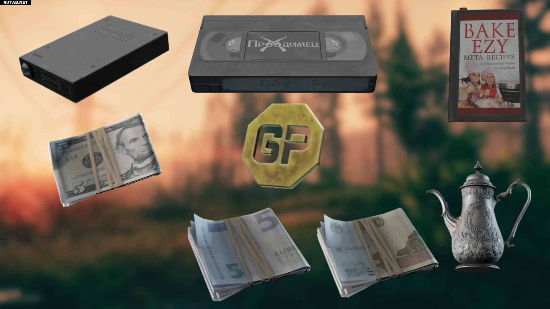 В сейфах можно найти валюту (рубли, евро, доллары), информационные предметы вроде папок с разведданными и военных флешек, а также ценные вещи для обмена. Среди них — монеты GP, часы Rolex, физические биткоины, медиаторы Veritas, фигурки кошек, антикварные чайники. Всё это хорошо продается торговцам или помогает в улучшении убежища.