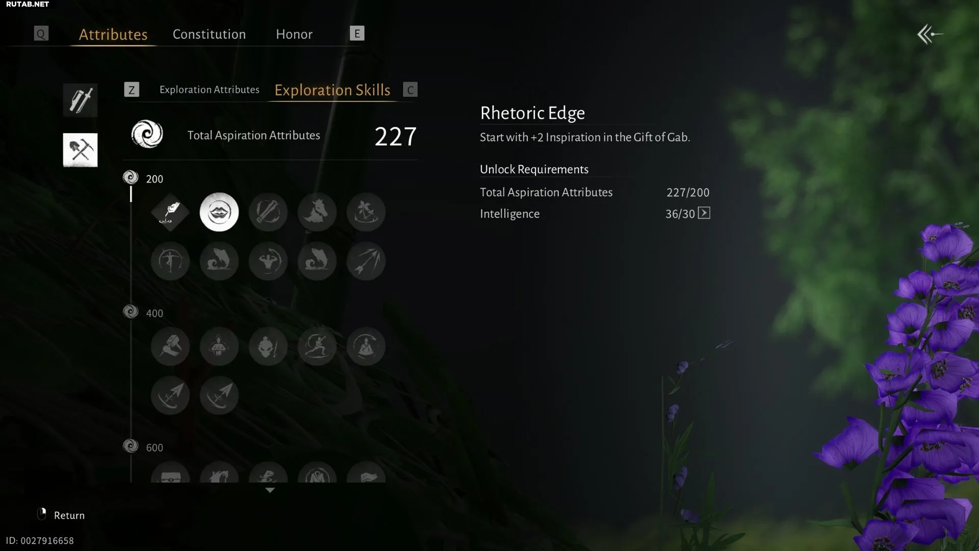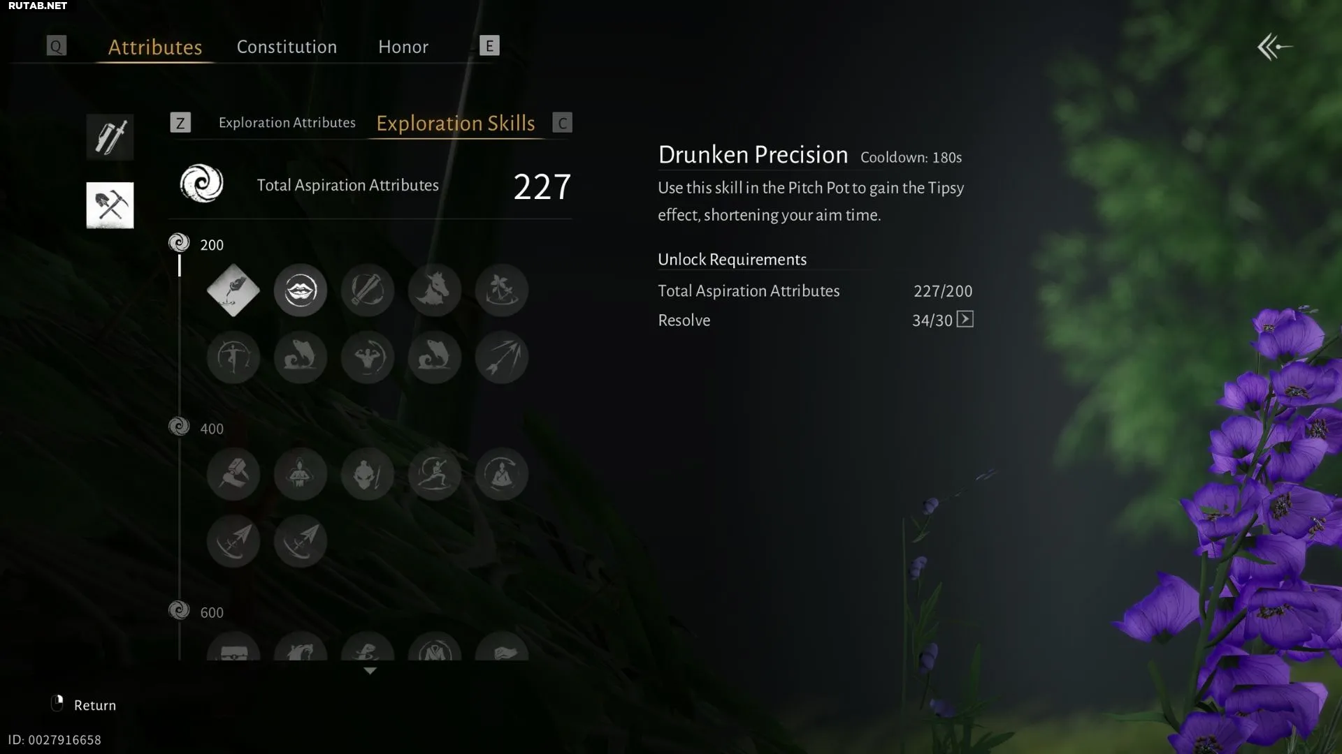 Общие характеристики Аспирации и Таланты Аспирации можно найти в меню «Пуск» → «Развитие» → «Подробности» (в правом углу экрана) → «Мастерство исследования» → «Атрибуты исследования».