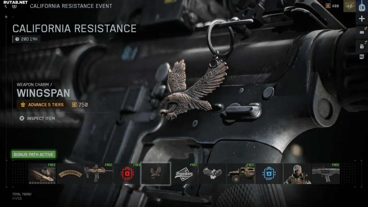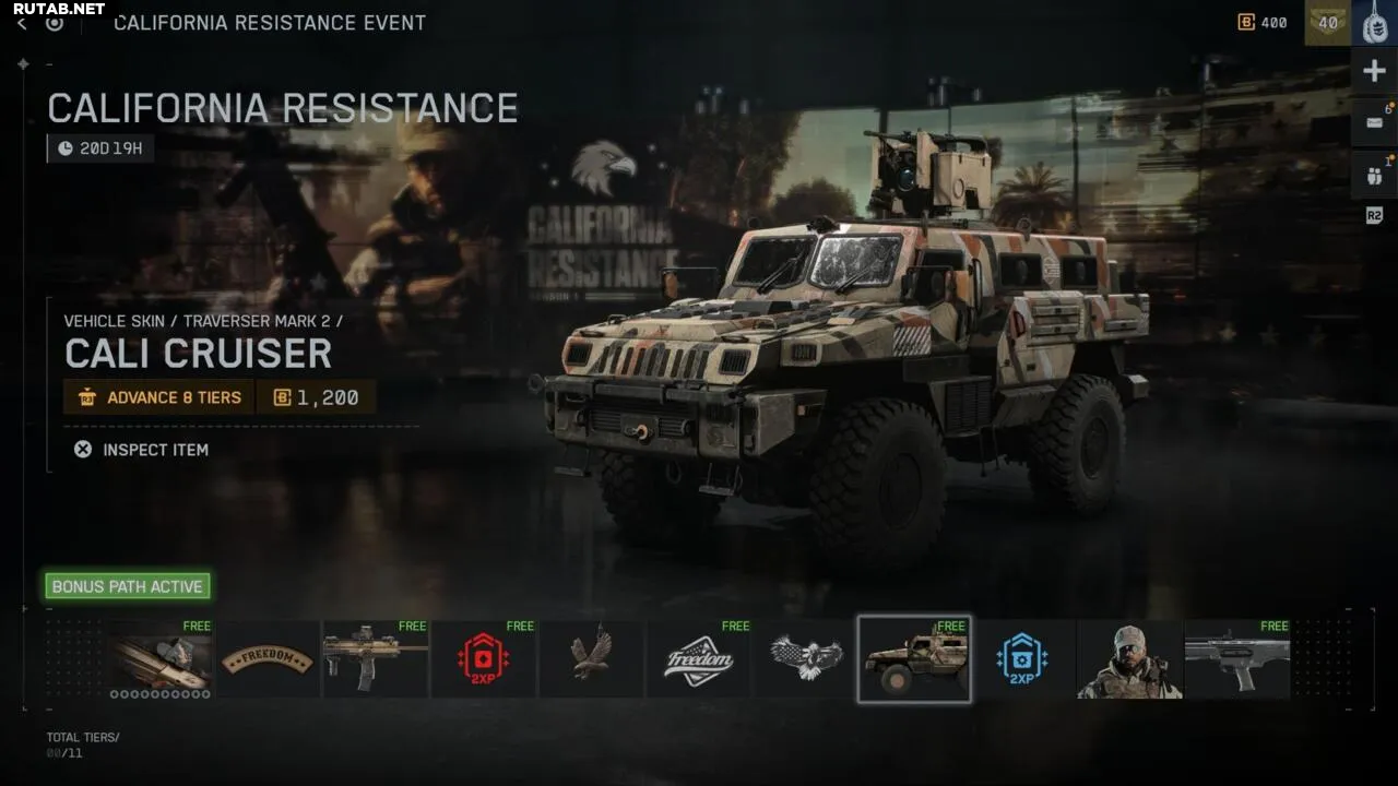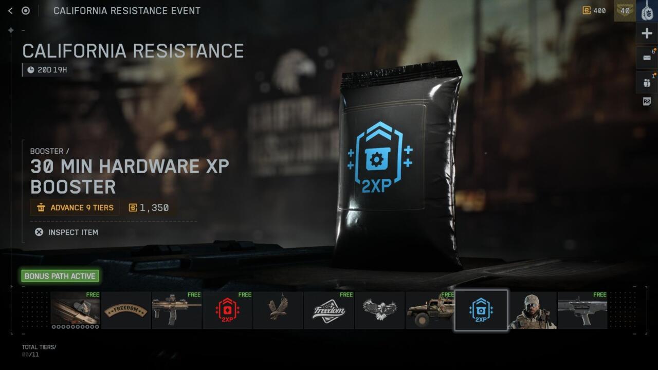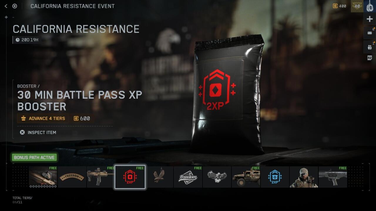 Пропуск события «California Resistance» находится во вкладке боевого пропуска, но не заменяет основной пропуск 1-го сезона. Всего в нём 11 уровней с бесплатными и премиум-наградами. Шесть из них, включая новое дробовик DB-12, доступны всем игрокам.