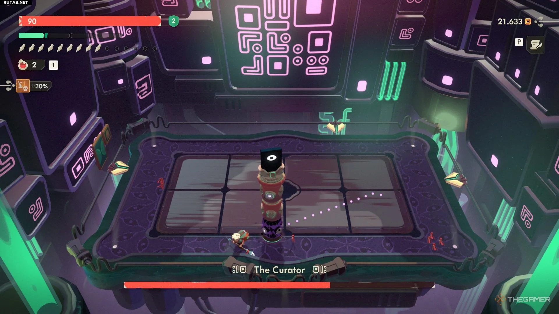 Хранитель ждёт вас в конце забега в Выставочном крыле Галереи. Это сражение с тотемом-боссом, в котором вас будут атаковать многочисленные лазеры.