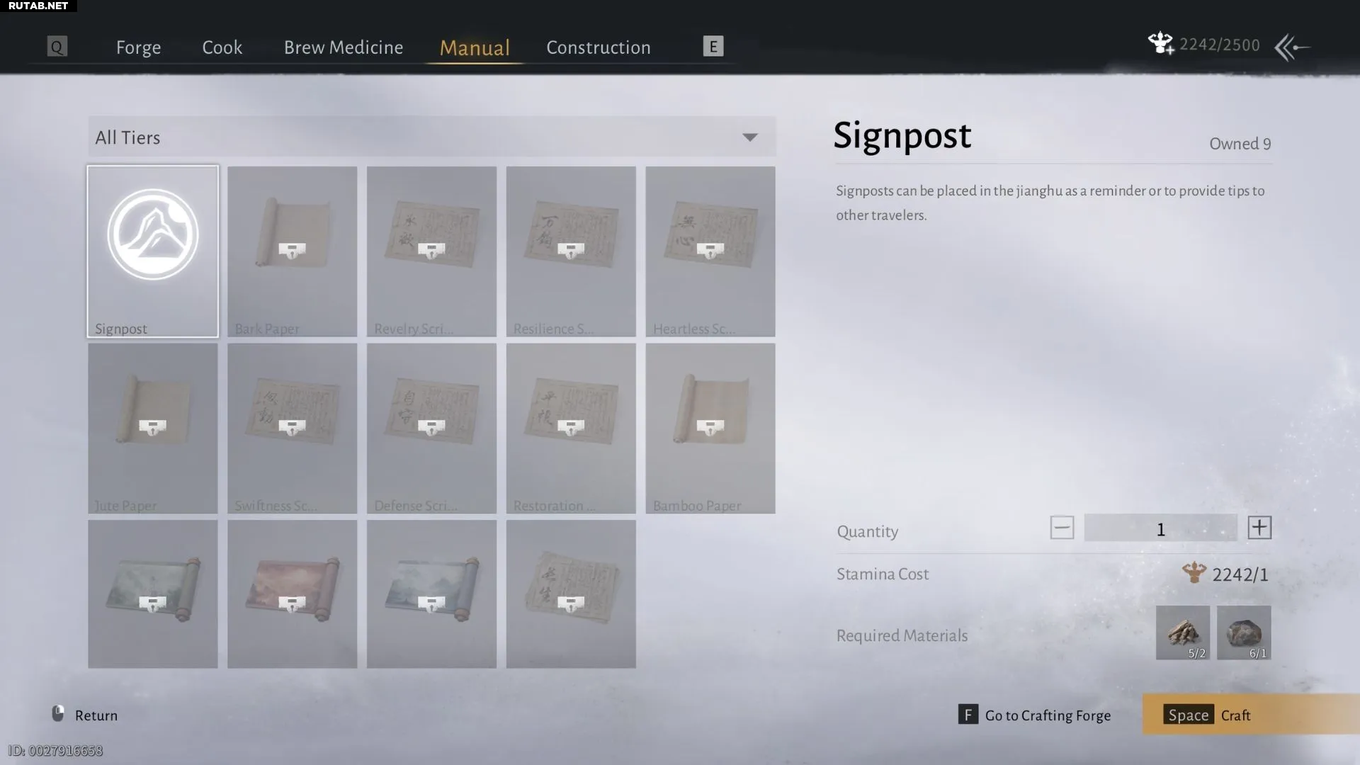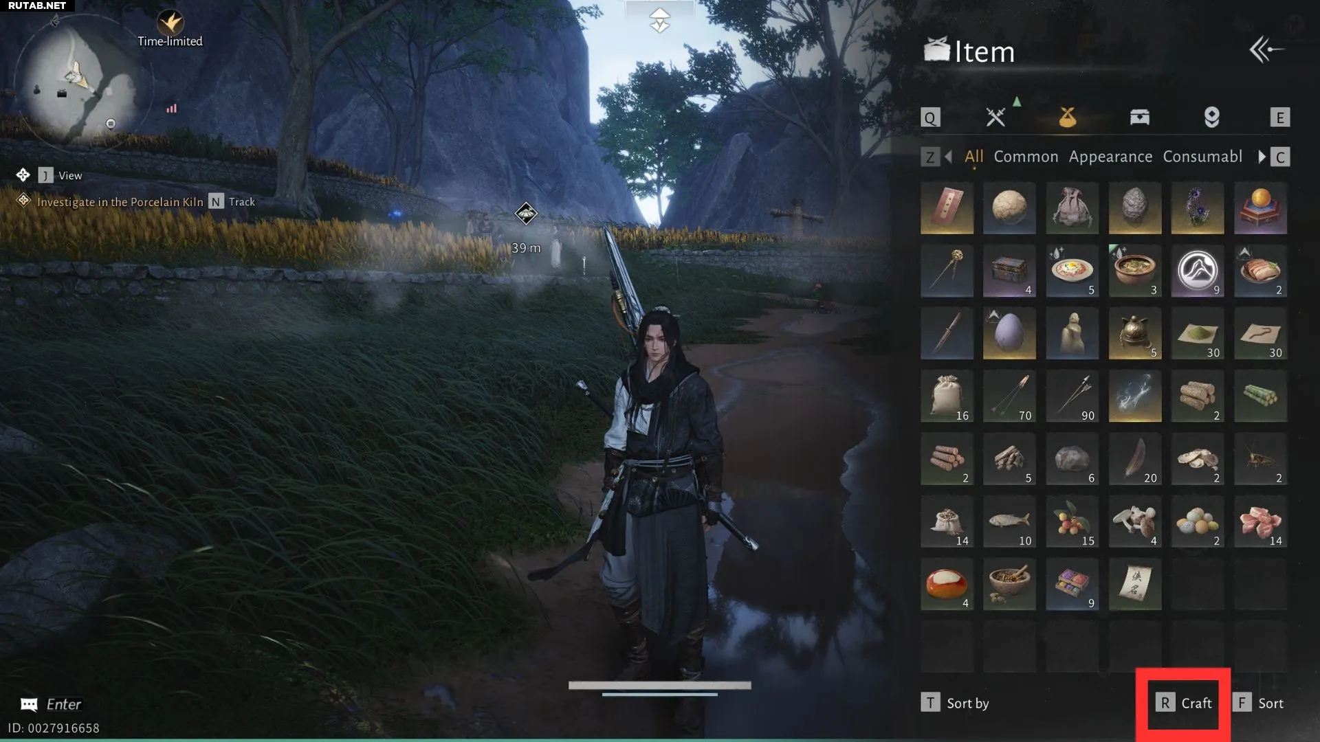 - Откройте Рюкзак (B) и выберите «Крафт» в правом нижнем углу