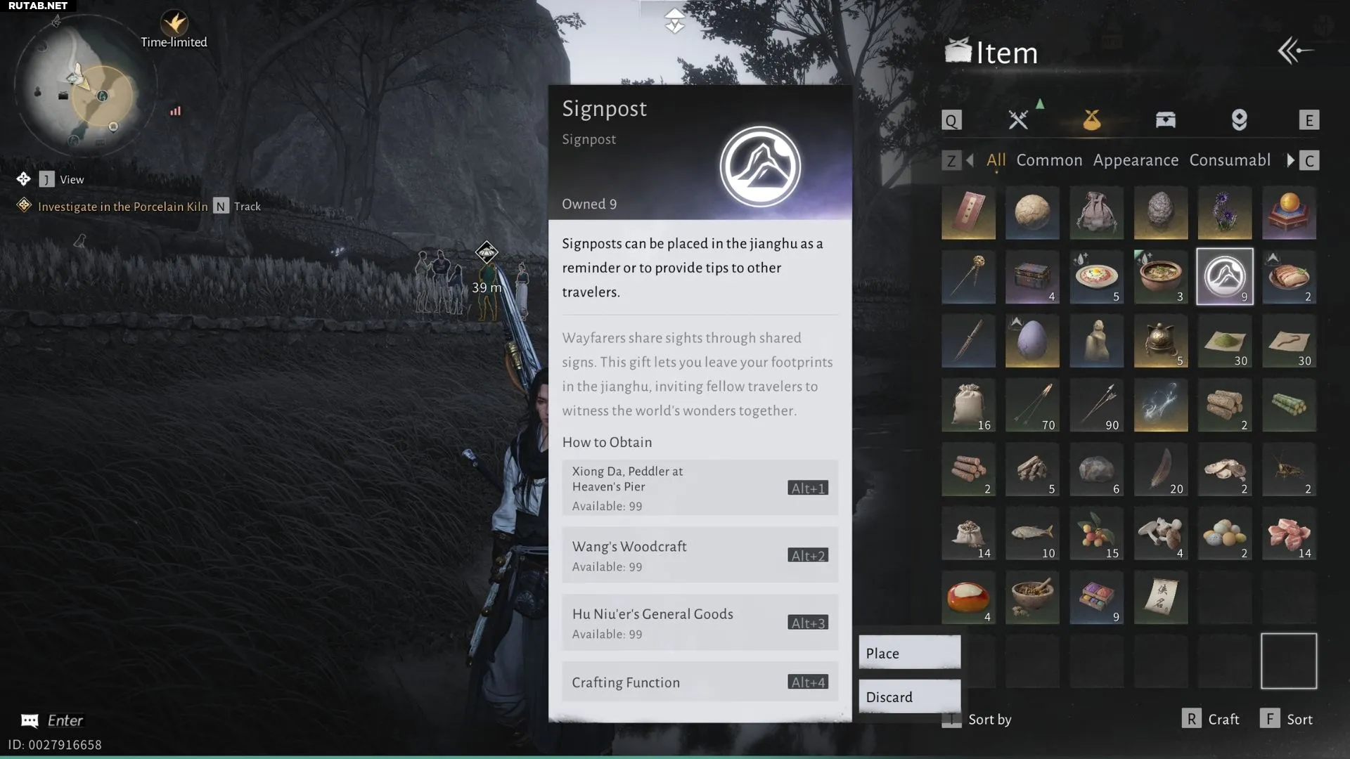 - Откройте Рюкзак (B) и найдите указатели в разделе «Предметы» → «Обычные»