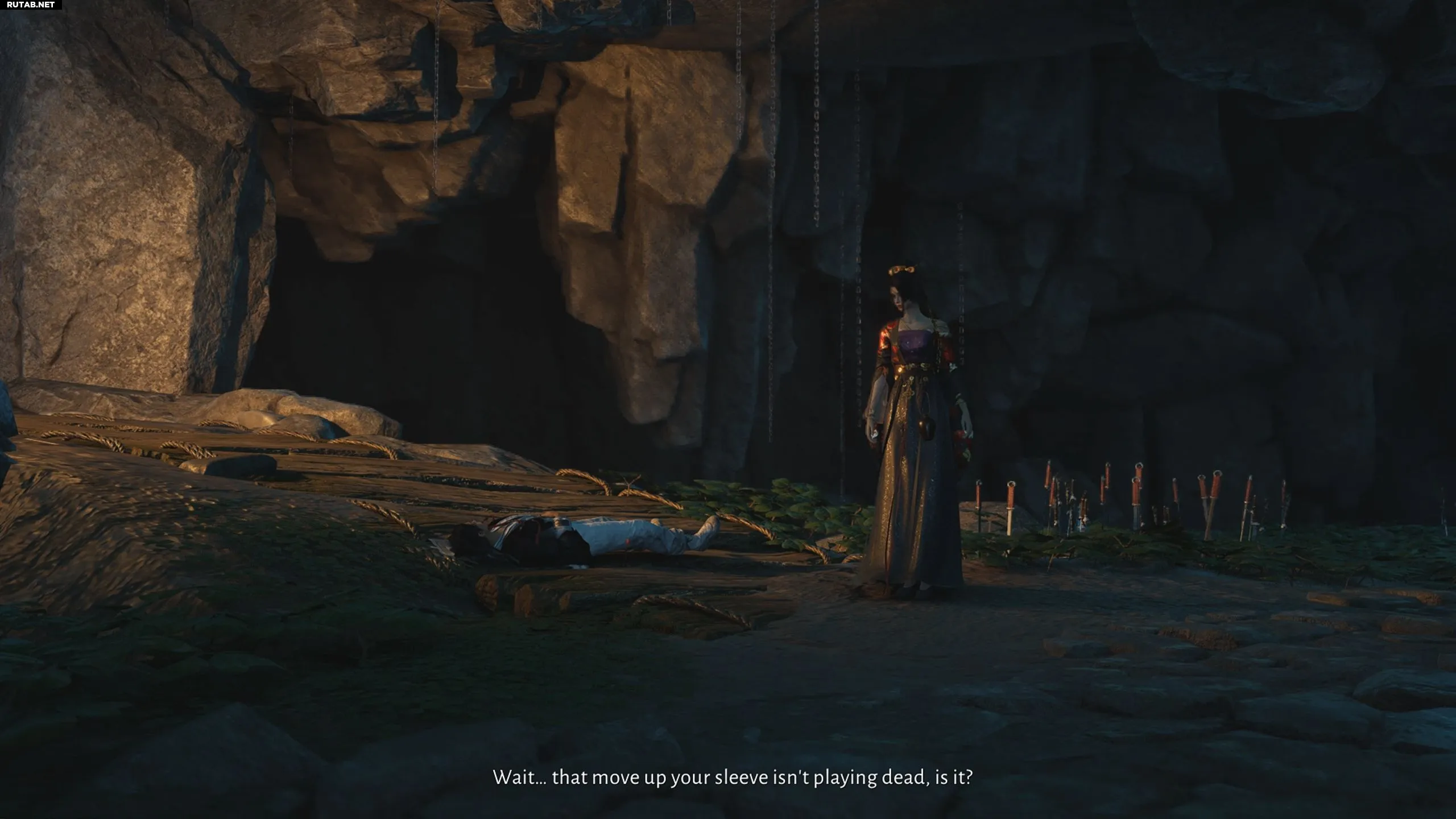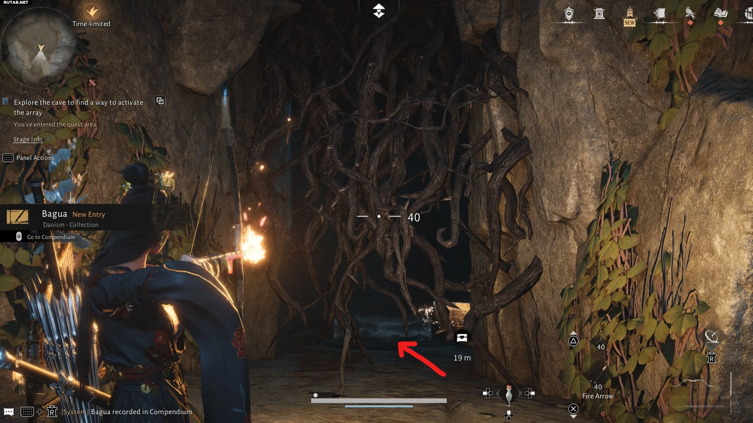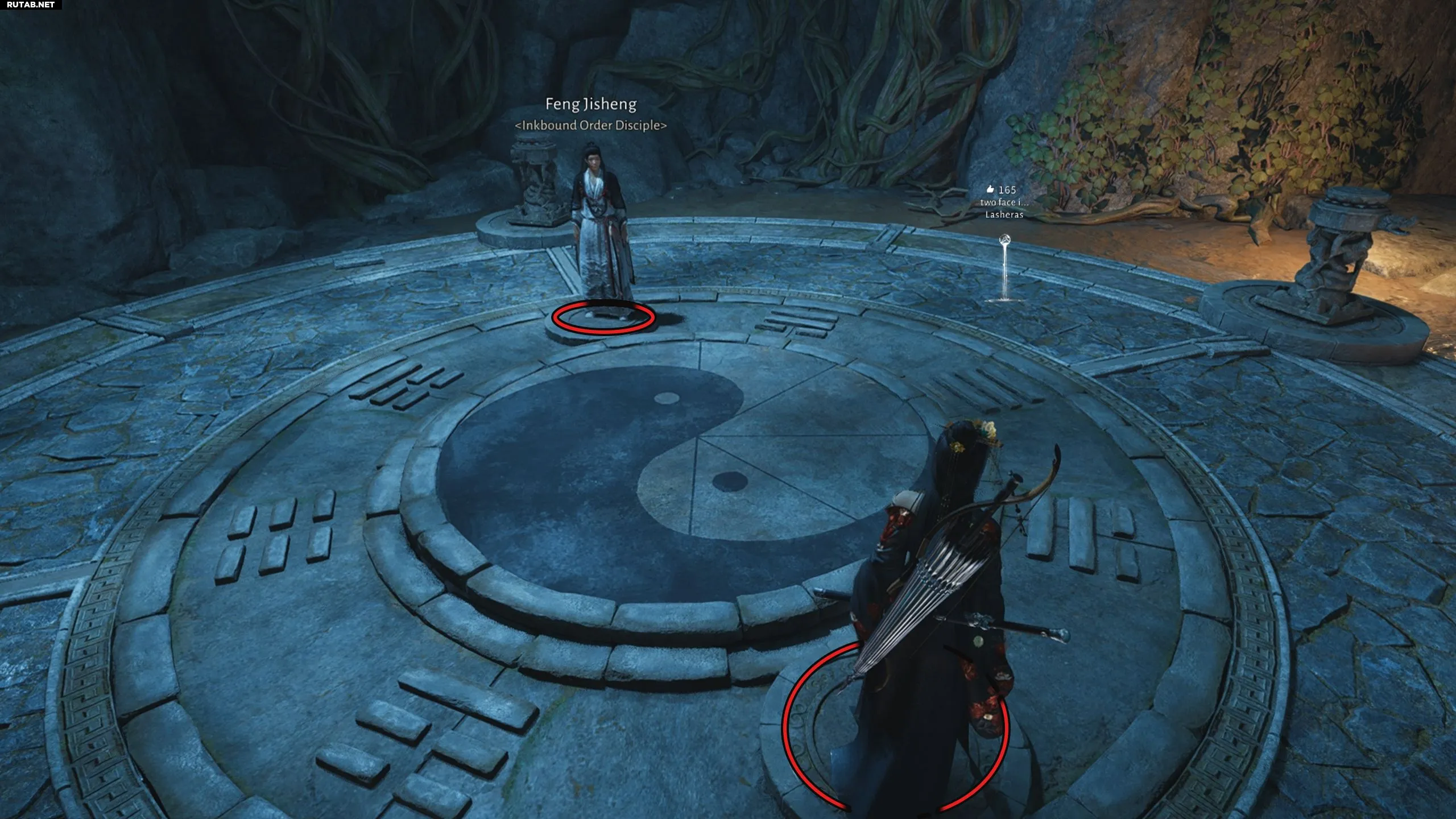 Обнаружив, что голос принадлежит Фэн Цзишэну (с которым вы соревновались в стрельбе из лука в начале игры), подойдите к корням дерева и сожгите их огненной стрелой.