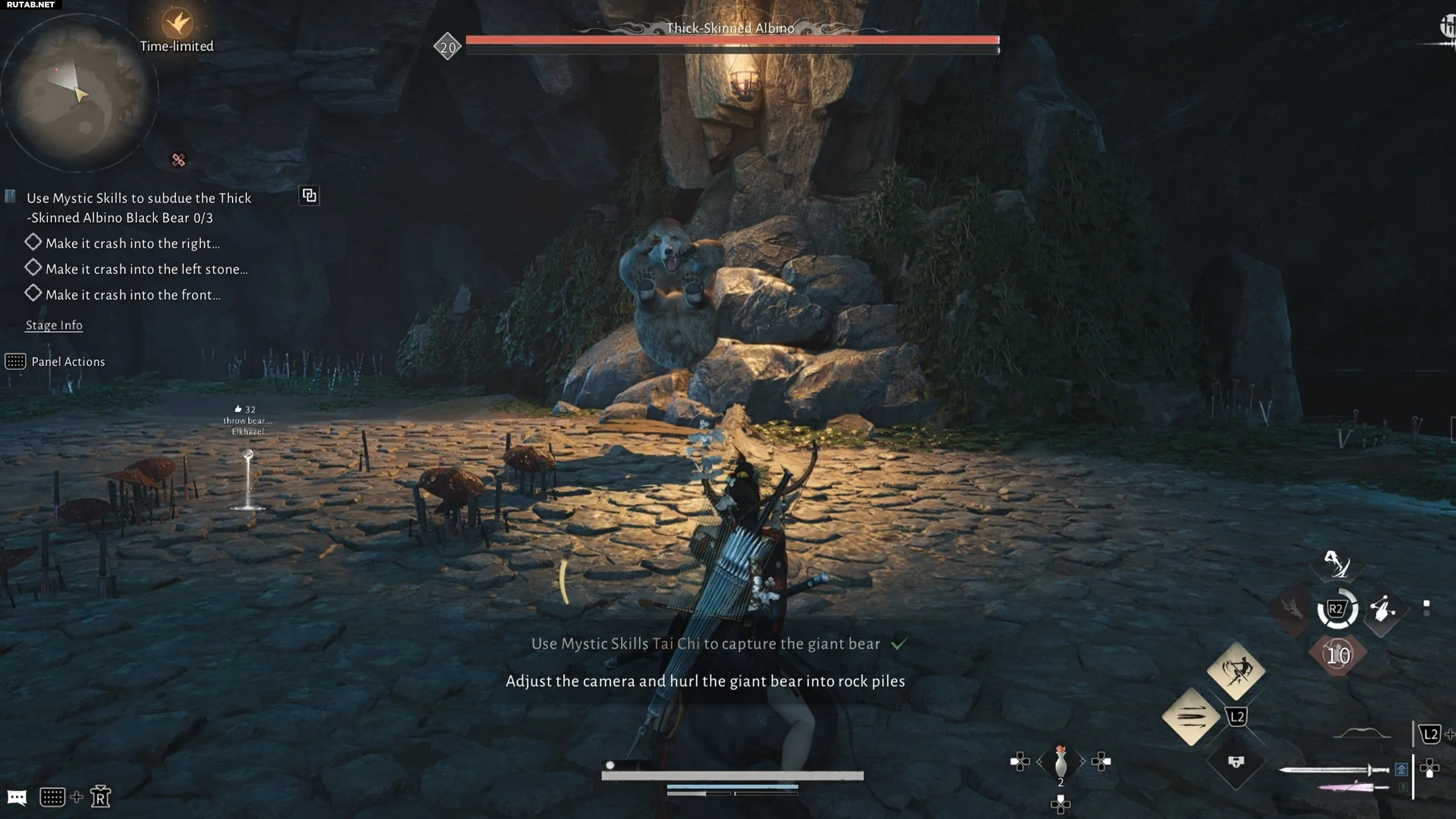 В следующей области появится толстокожий альбинос-черный медведь. Его нельзя победить обычными атаками — используйте мистическое умение Тайцзи.