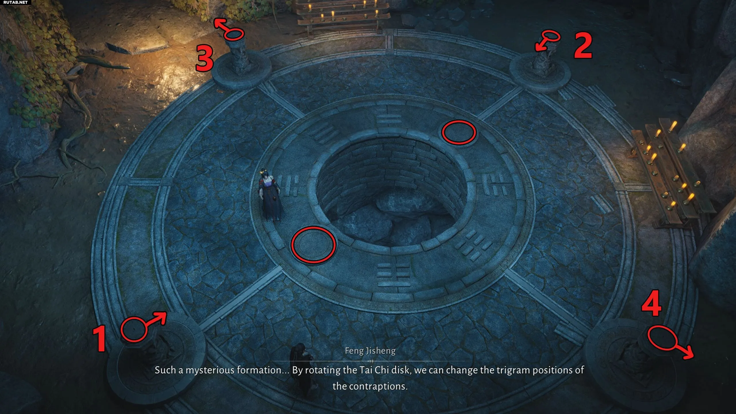 Чтобы разгадать тайны Тайцзи, нужно повернуть механизмы земли и неба в противоположные стороны, а механизмы воды и огня — друг напротив друга. Механизмы можно вращать по и против часовой стрелки, также можно вращать инь-ян диск.