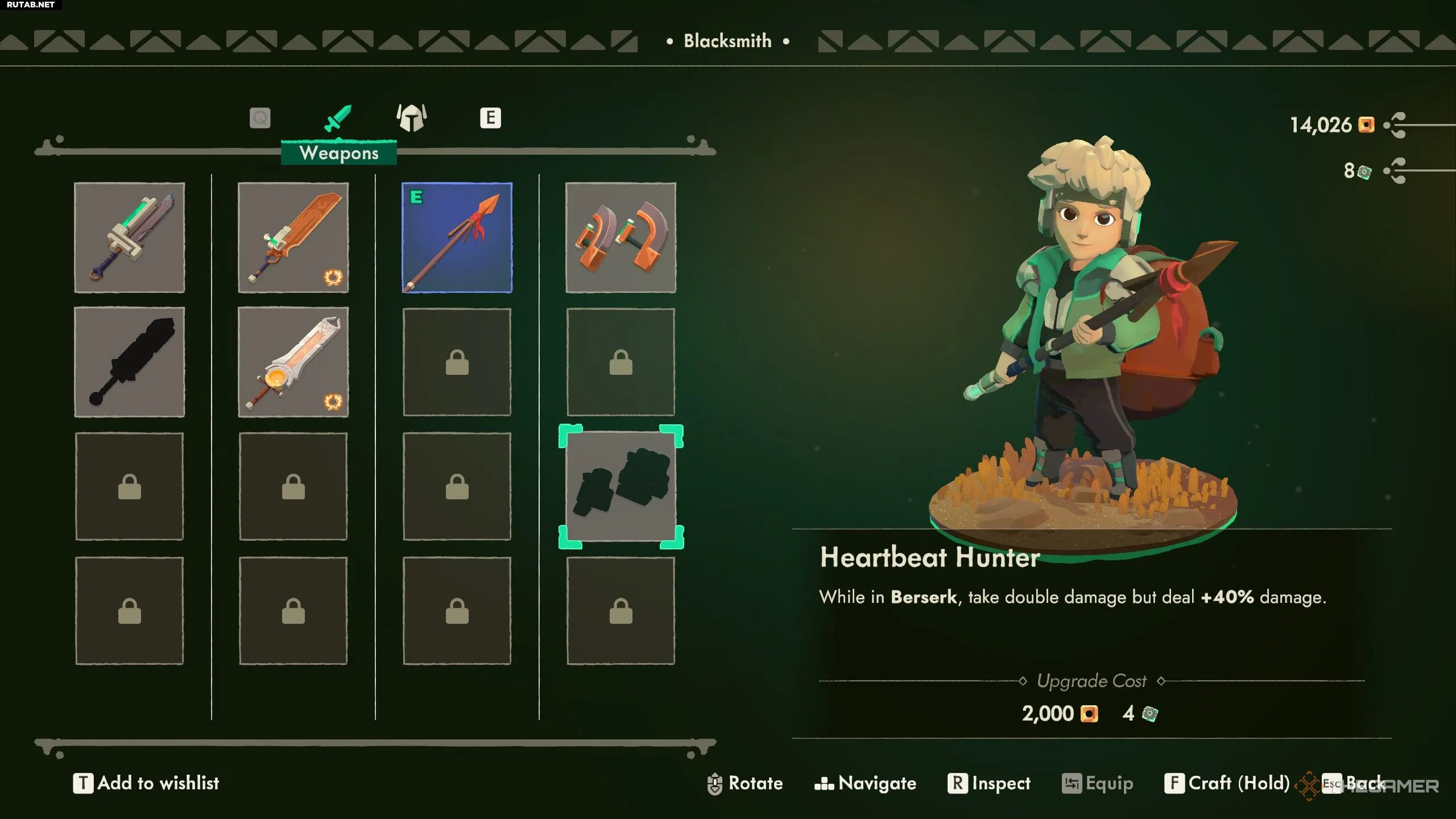 Уникальная способность этих перчаток — увеличение урона на 40% в состоянии «Берсерка», но при этом вы получаете на 40% больше урона. Это оружие для тех, кто уверен в своих навыках уклонения и готов рискнуть ради высокого урона.