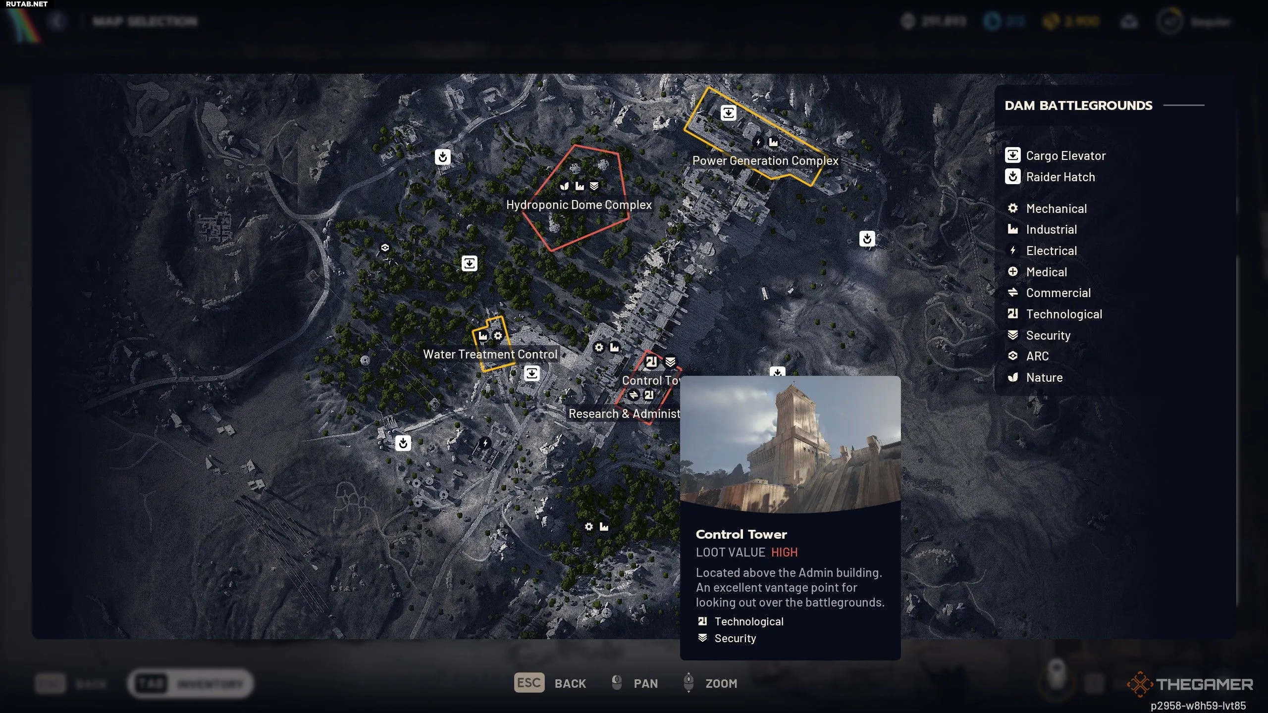 Контрольная башня на Поле боя у Дамбы тоже перспективна, но находится на последнем месте из-за популярности у PvP-игроков. На втором этаже есть несколько точек с сенсорами, а рядом расположены Исследовательский и Административный корпуса с электронными контейнерами.