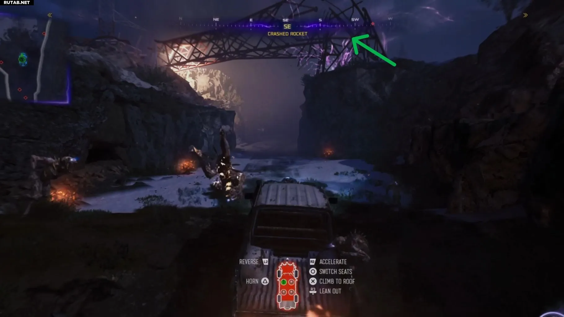 - Возле дорожного знака Эшвуда при движении к космодрому, высоко на скале