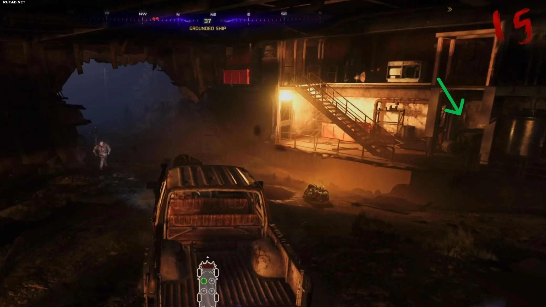 - На дороге сразу за закусочной, ведущей к транспортному средству «Проект Янус». Ключ может находиться за транспортным средством