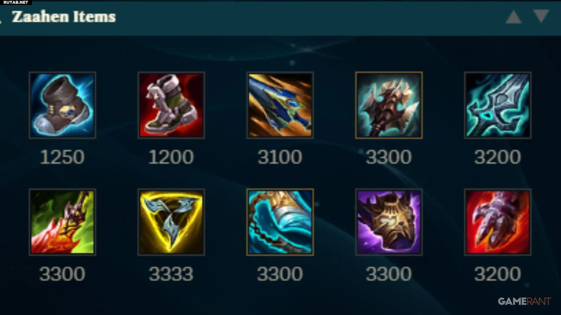 Особого внимания заслуживает Титановая Гидра, так как её активная способность сбрасывает задержку автоатаки, позволяя Захину быстрее накапливать стаки пассивки. Клинок Поверженного Короля — ещё один идеальный предмет, хотя он и не даёт защитных характеристик.