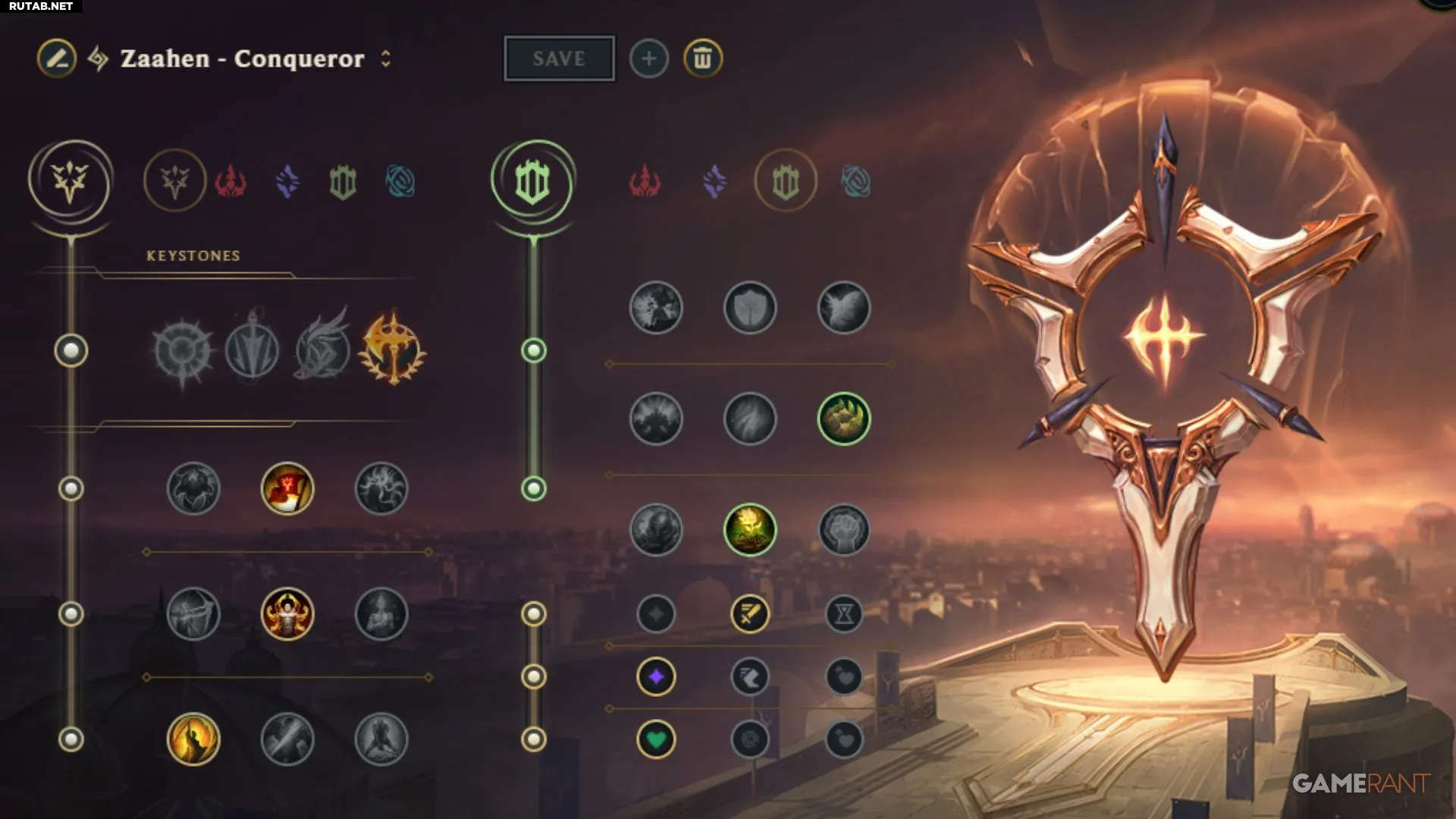 Ключевая руна Завоеватель отлично сочетается с Захином, так как он накапливает её стаки одновременно с пассивной способностью, превращаясь в настоящего рейд-босса. Дерево Точности также содержит множество полезных для Дааркина рун.