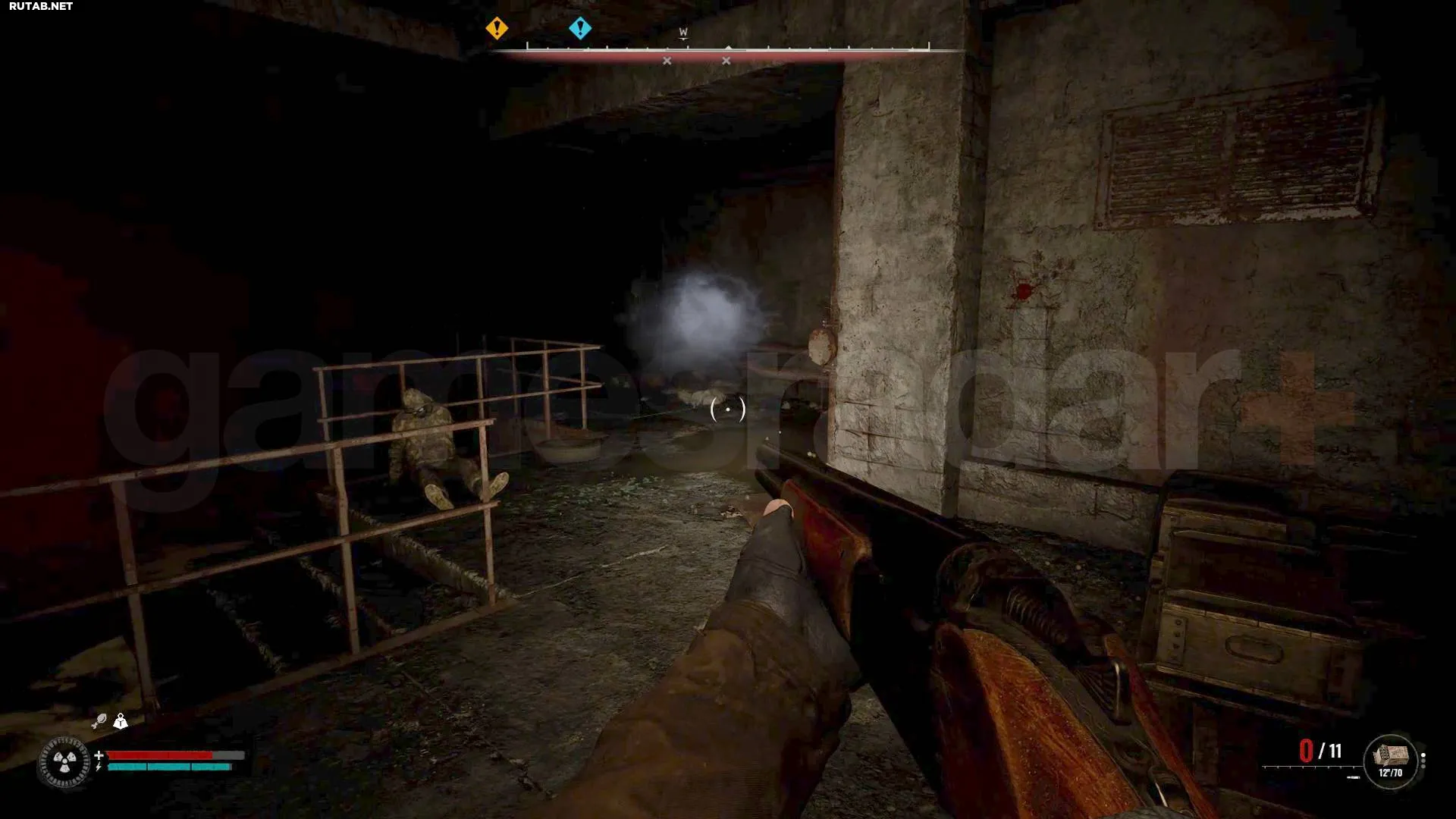 О присутствии полтергейста сигнализируют парящие в воздухе объекты — ящики, бочки, контейнеры, которые внезапно летят в вашу сторону. Источником этой угрозы является мерцающее спектральное свечение, показанное на изображении выше. Хотя полтергейст выглядит призрачным, он обладает физической формой, но использует невидимость, подобно кровососу из «Тени Чернобыля».