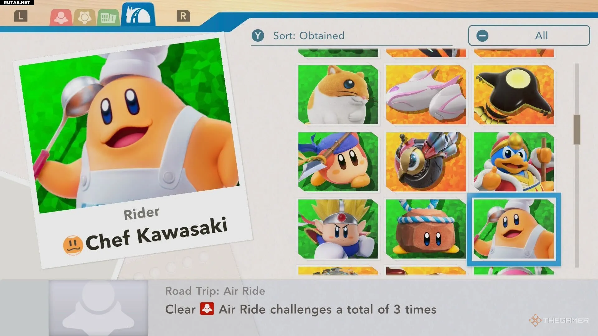 Шеф Кавасаки быстро стал фаворитом в Air Riders. Разблокируйте его, выполнив три испытания Air Ride в режиме «Дорожное путешествие». Просто выбирайте испытания красного цвета — и он ваш. Альтернативный способ: съесть онигири ближе к концу этапа «Гора Янтарных водопадов» в режиме Air Ride.