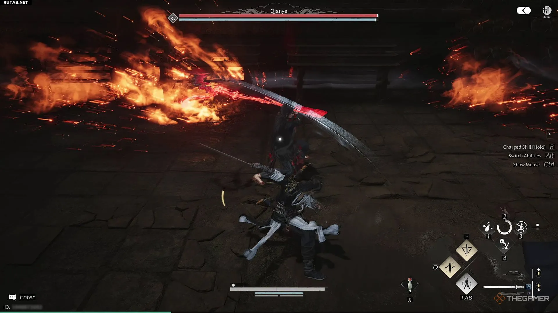 Также в этой фазе Цянье начнёт заряжать энергию в косе, отводя её за спину. В этот момент используйте «Прикосновение меридианов» (когда появится подсказка), чтобы отбросить босса и нанести несколько ударов. Если не успеть применить искусство, вас поразит серия энергетических волн, наносящих высокий урон и накладывающих эффект «Ожог».