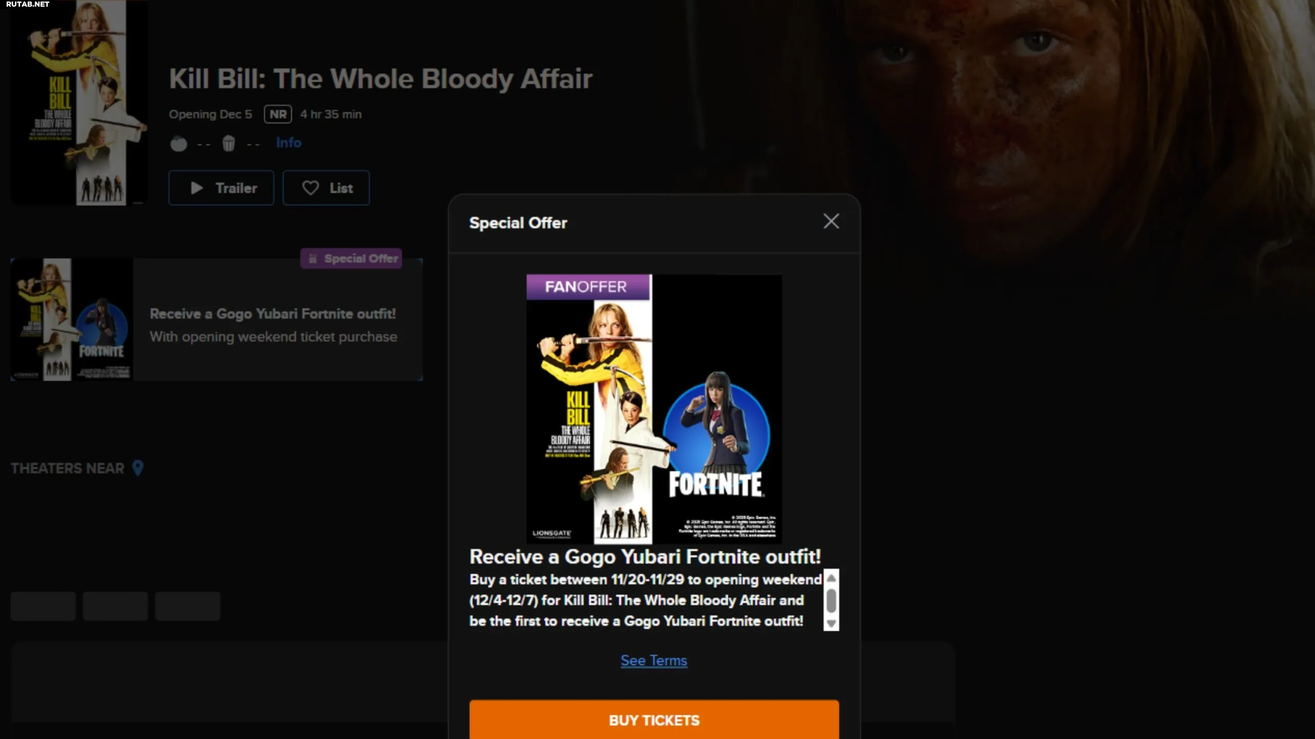 - Перейдите на Fandango и купите билет на фильм «Kill Bill: The Whole Bloody Affair» с 20 по 29 ноября 2025 года.