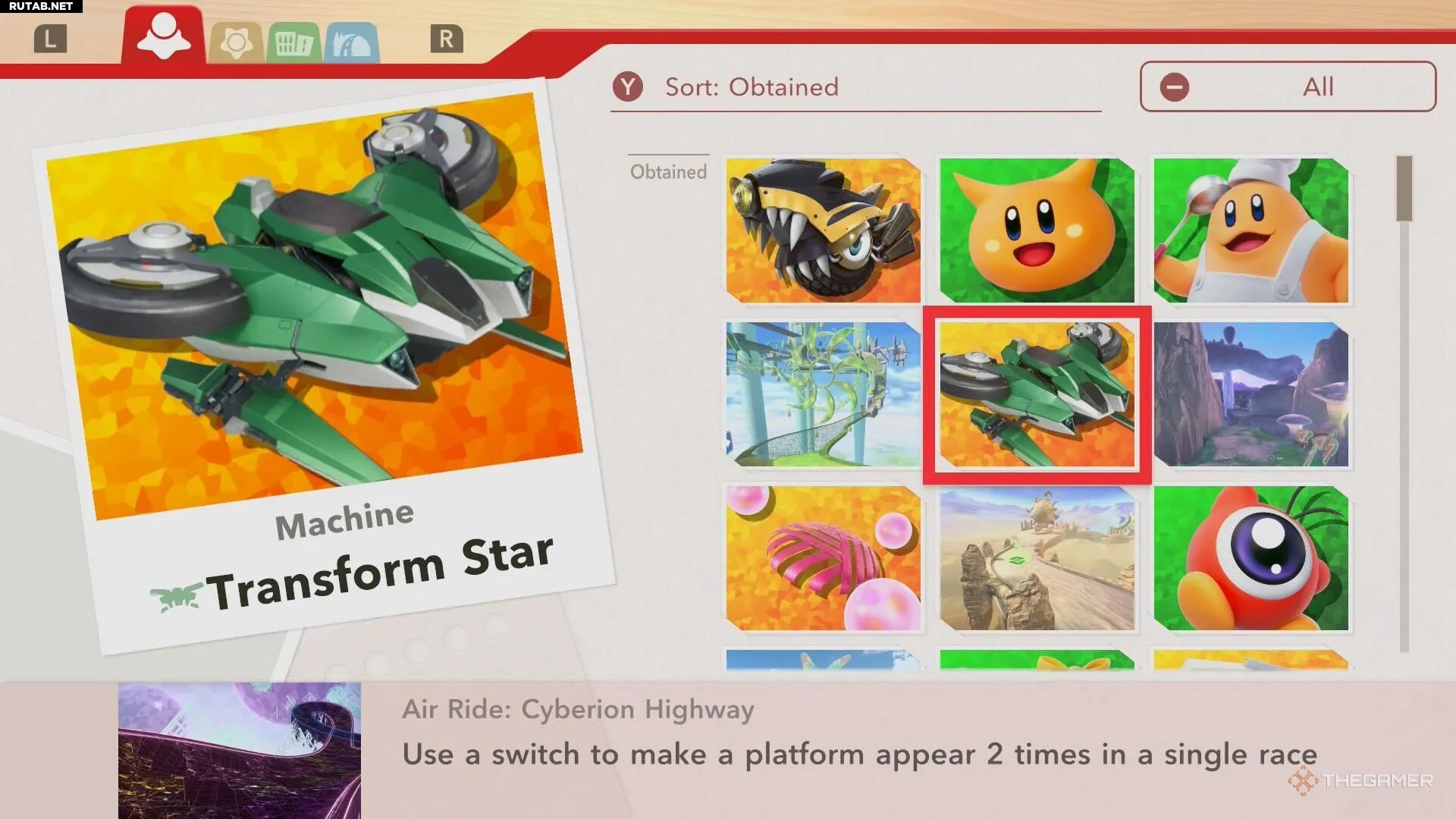 Не можете выбрать между байком и звездой? Transform Star может стать идеальным решением, поскольку её быстрая атака переключает её между формами Байка и Звезды. Самый простой способ разблокировки — сыграть на карте «Cyberion Highway» в режиме «Air Ride» и дважды использовать переключатель для появления платформы. Переключатель легко заметить, поэтому просто увеличьте количество кругов, чтобы именно вы его активировали.