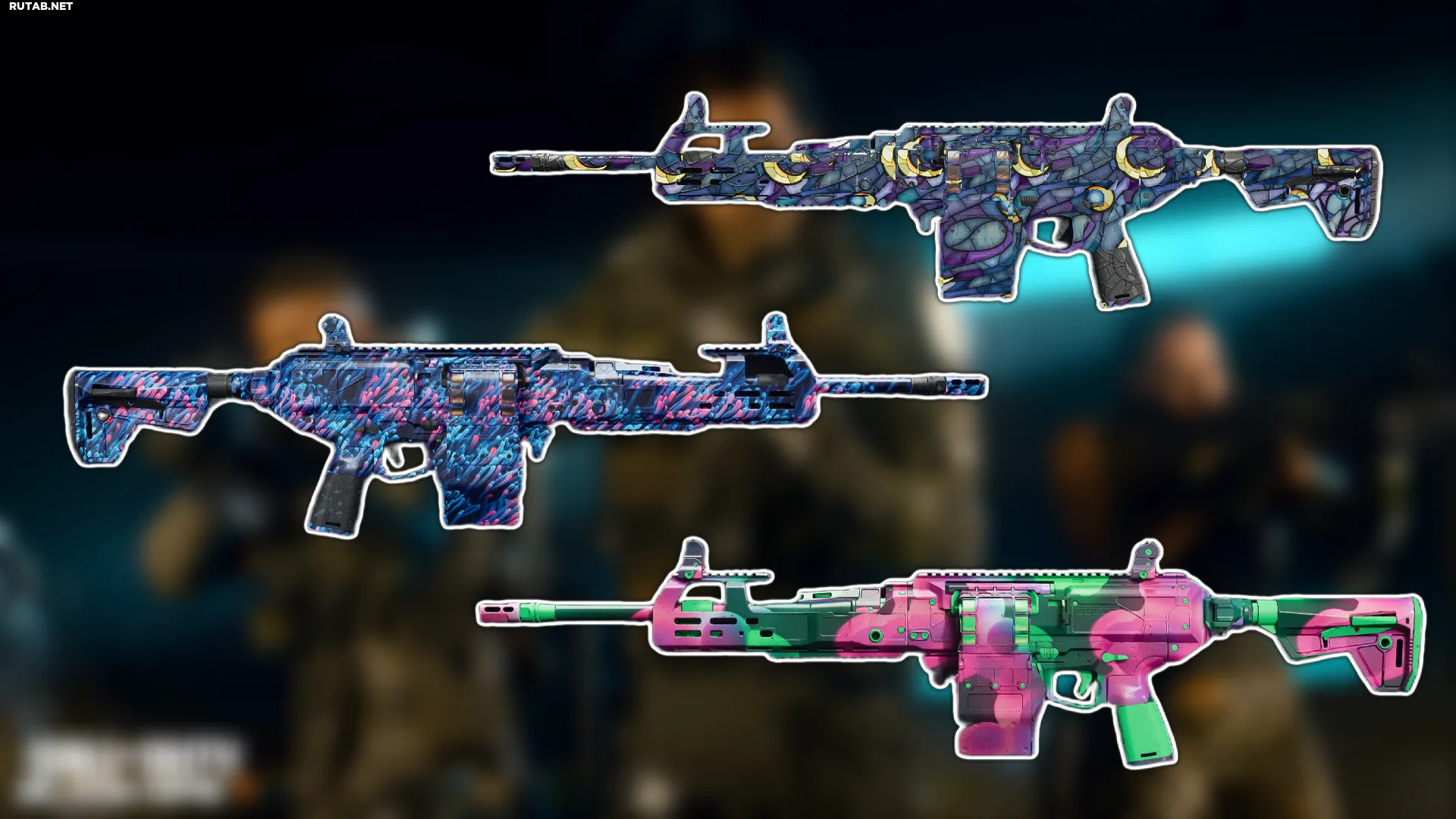 Кроме того, каждое оружие также имеет три уникальных камуфляжа для разблокировки (которые затем можно применить к любому выбранному оружию). Например, AK-27 получает камуфляжи Carbon Fiber, Shackled и Lotus, а Coda 9 — Art of War, Moss и Benjamins.