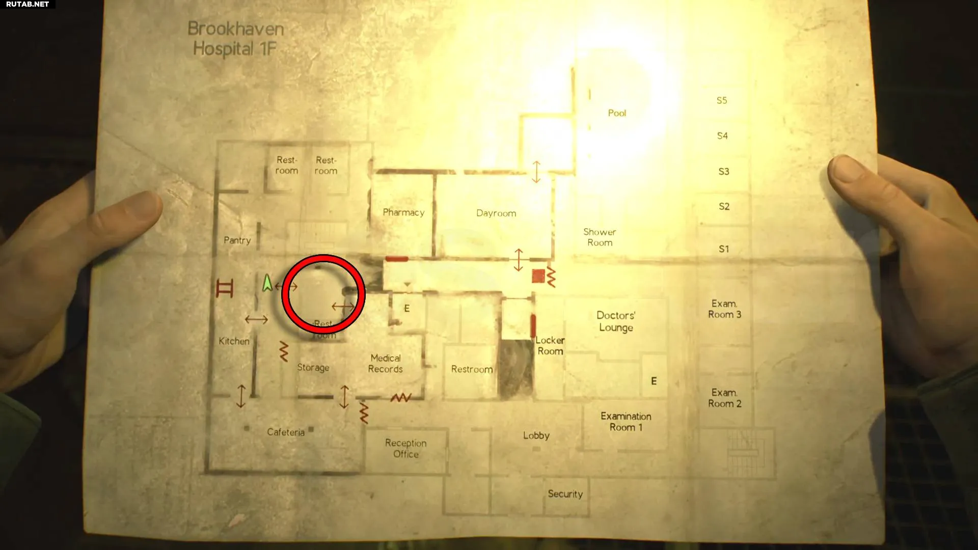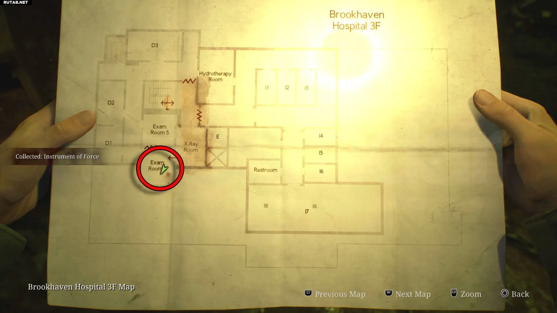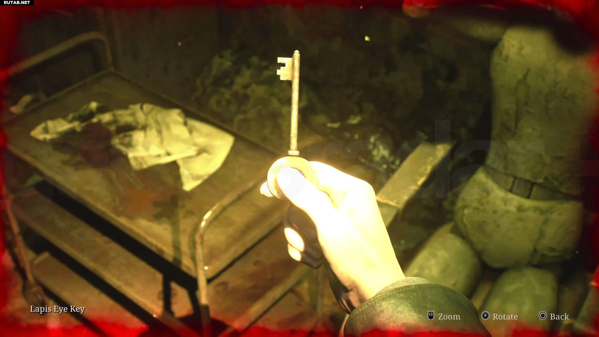 Хирургическое кресло с манекеном находится в смотровой комнате, куда ведет средняя цепь от ящика. Здесь вы обнаружите манекен, закрывающий лицо. С помощью «Инструмента силы» (молотка) можно сломать первую руку, а затем открутить вторую, чтобы открыть глаз.