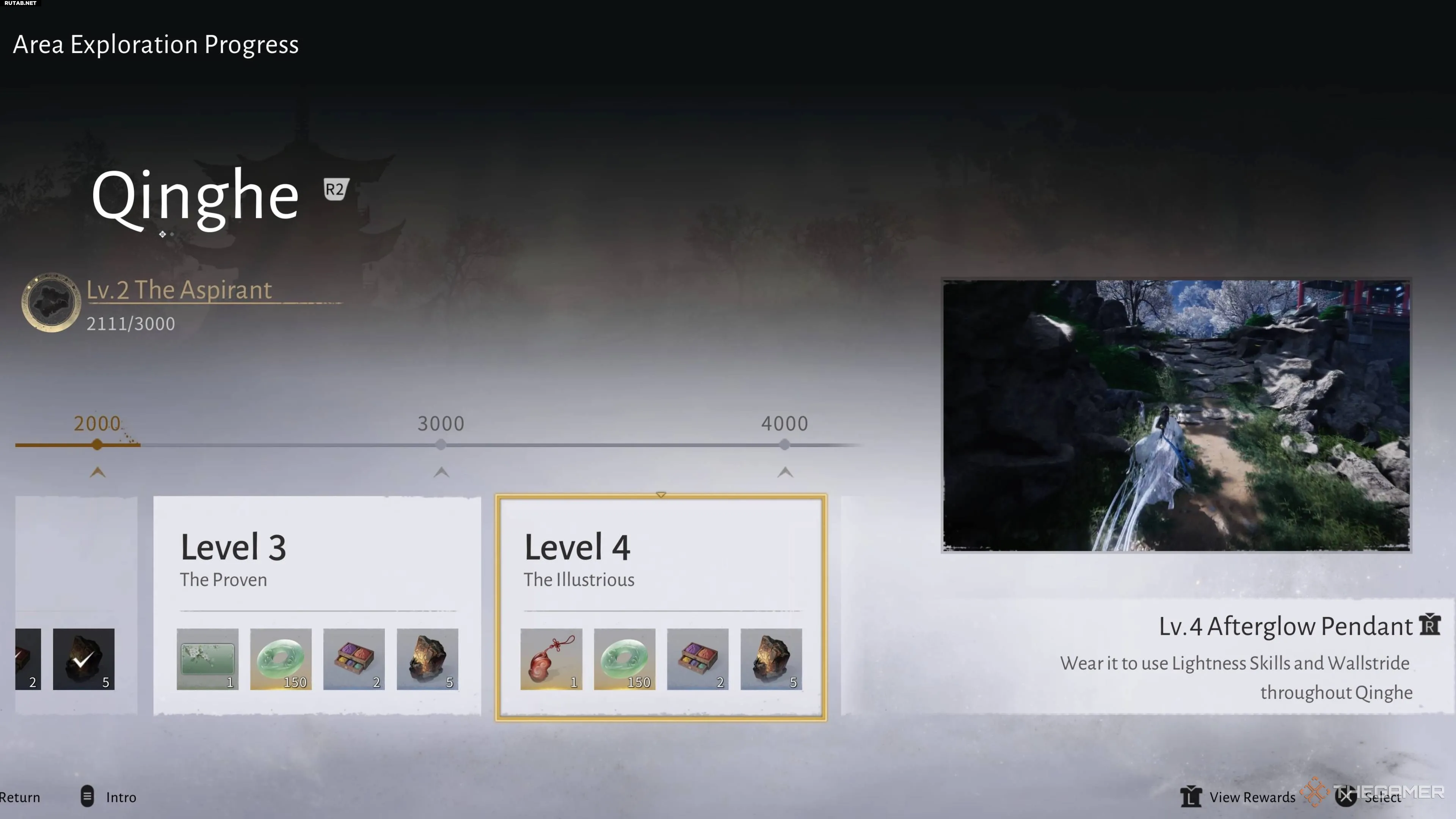 Кулон Зари является наградой за исследование региона Цинхэ. Как только вы достигнете 4-го уровня исследования этой области, вы получите Кулон Зари, что позволит вам свободно использовать Великие Искусства Легкости в регионе Цинхэ. Уровень исследования повышается по мере накопления очков исследования, которые уникальны для каждого региона. Опыт исследования начисляется практически за любую активность в Цинхэ — выполнение заданий, сбор предметов, пополнение коллекции диковин и так далее.