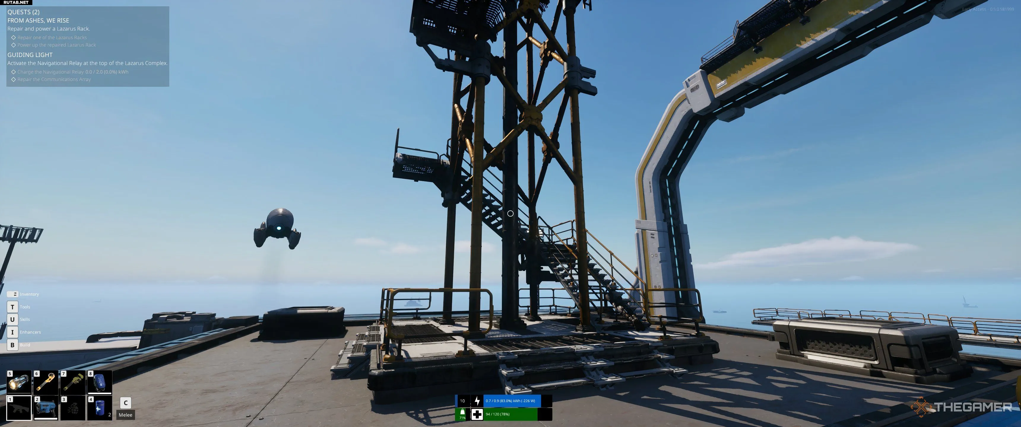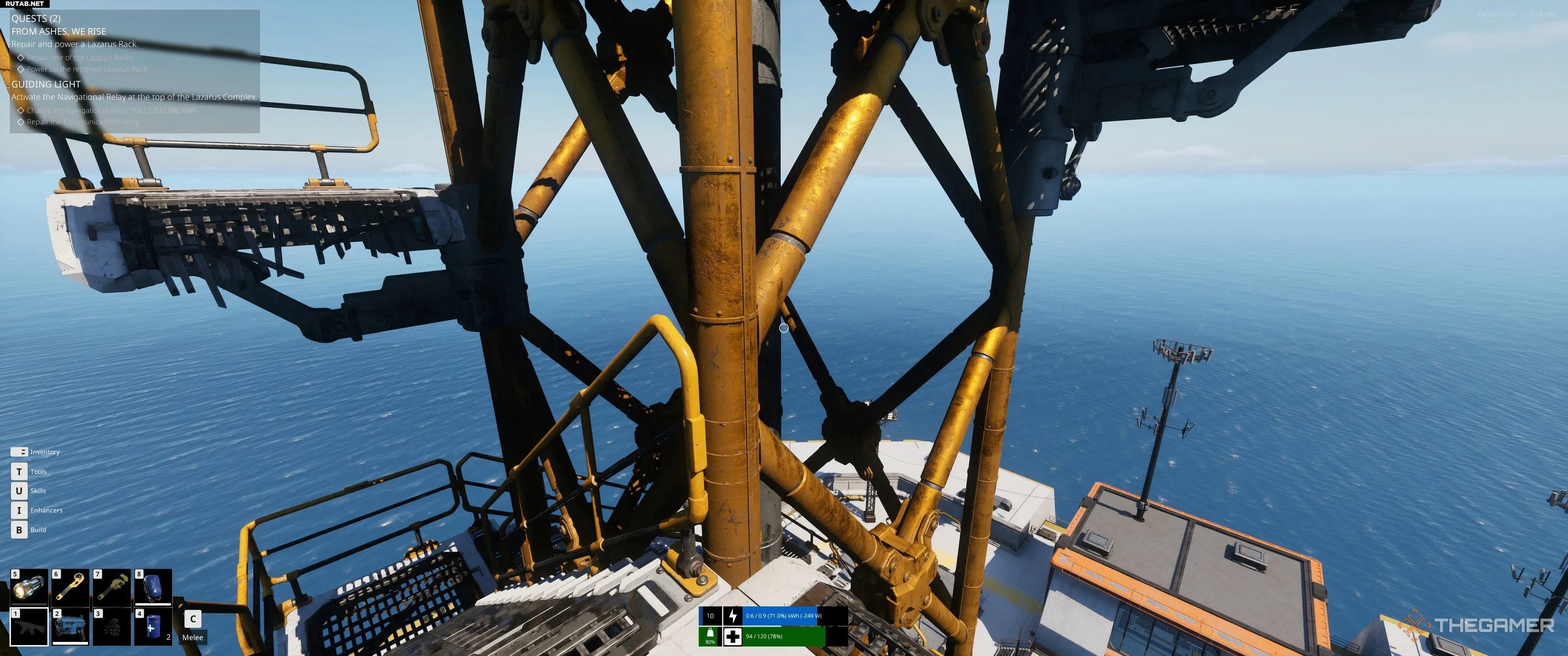 Оказавшись на вершине, отремонтируйте коммуникационную антенну с помощью собранных материалов. Также не забудьте осмотреть пол — там находится лестница, которую можно опустить, чтобы сделать спуск гораздо проще, чем подъём.