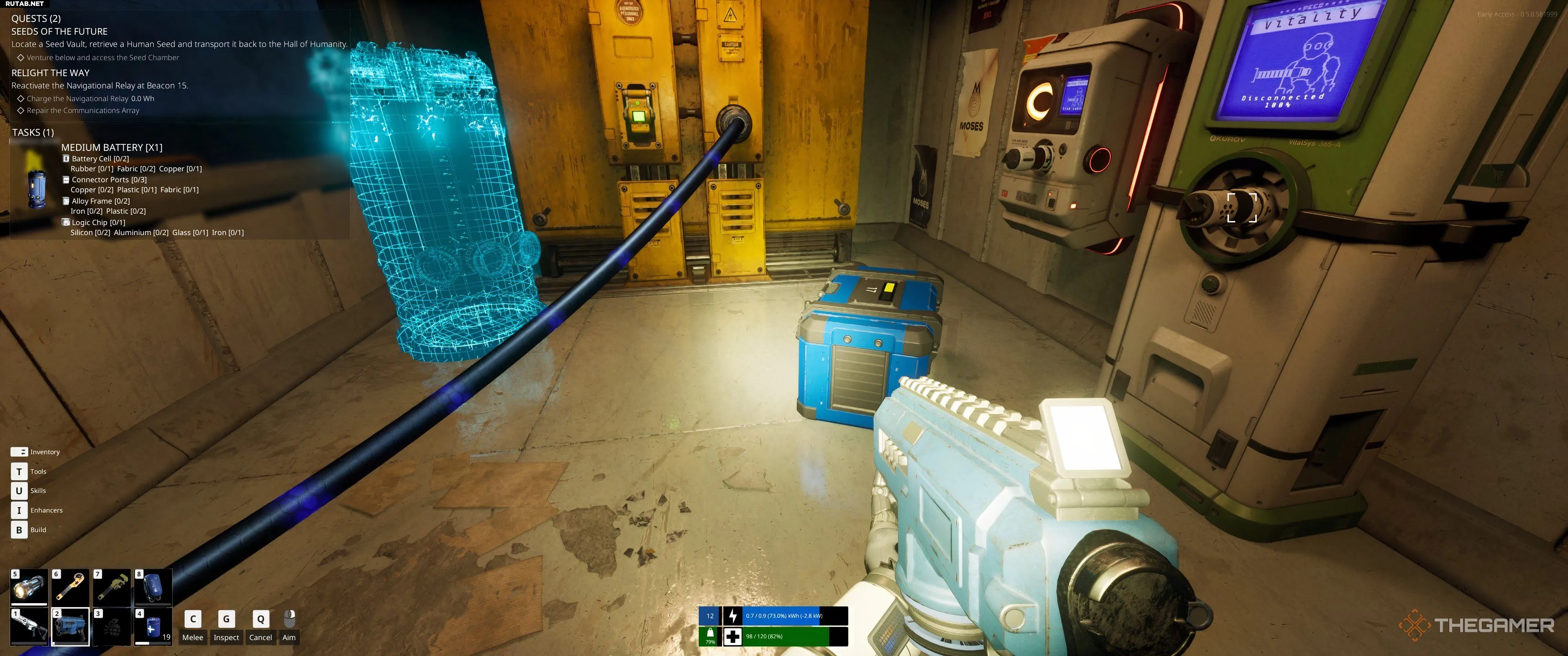 Все эти материалы можно найти, разобрав предметы в соседних комнатах, а затем переработав их с помощью рециклера в Зале. После сбора материалов подойдите к капсуле и отремонтируйте её, а также обеспечьте её энергией.