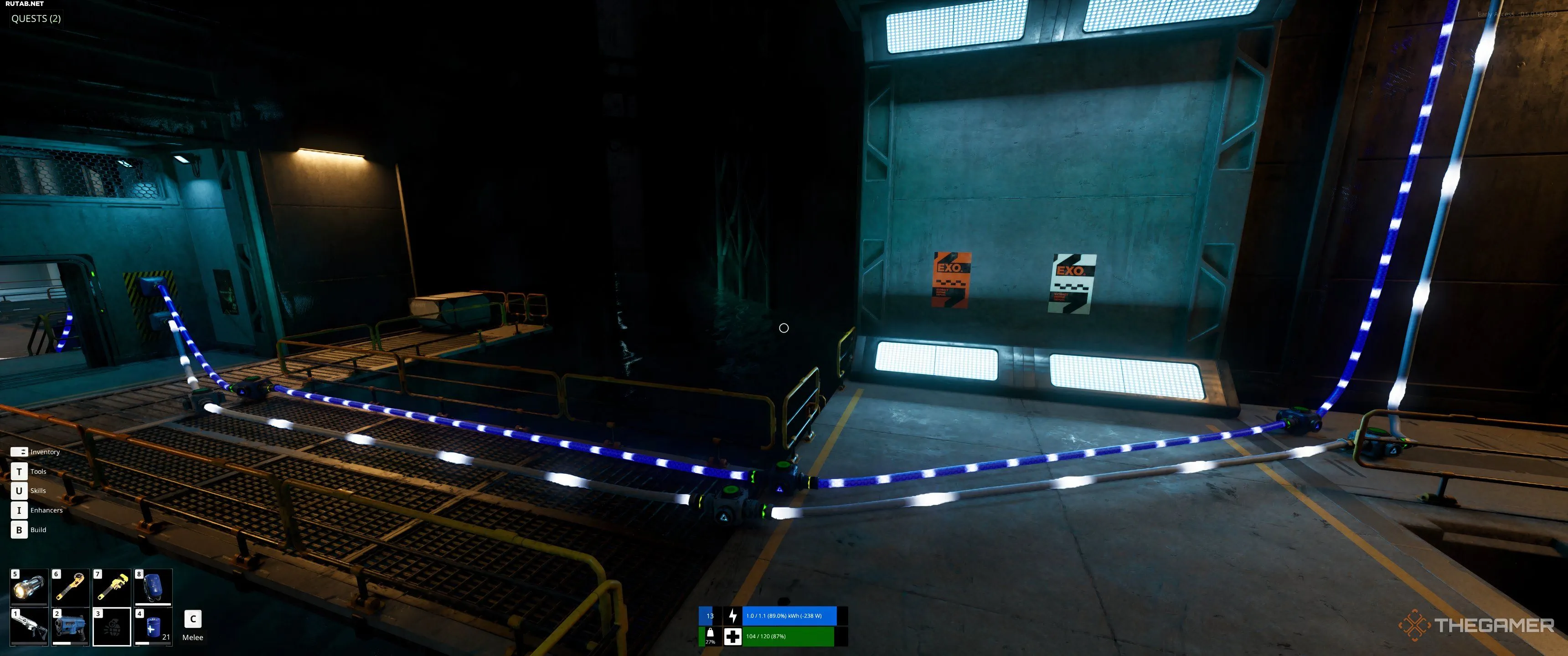 На другой стороне используйте соответствующие порты, чтобы протянуть оба кабеля к лестнице слева от лифта. Пара коннекторов поможет аккуратно проложить путь через мост.