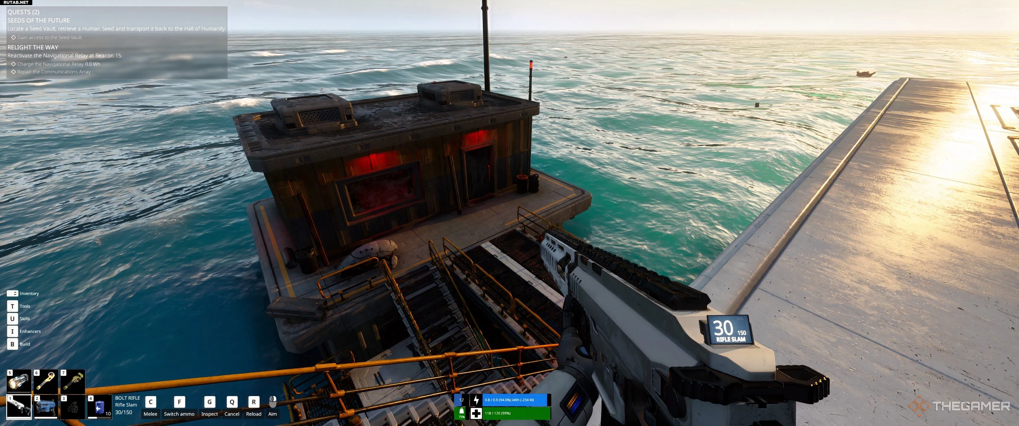 Вернувшись на корабль, вы увидите маркер хранилища семян. Перед поднятием якоря и отплытием обязательно восстановите здоровье и сохранитесь. До цели 3,3 км, путь займёт несколько минут в зависимости от вашего двигателя.