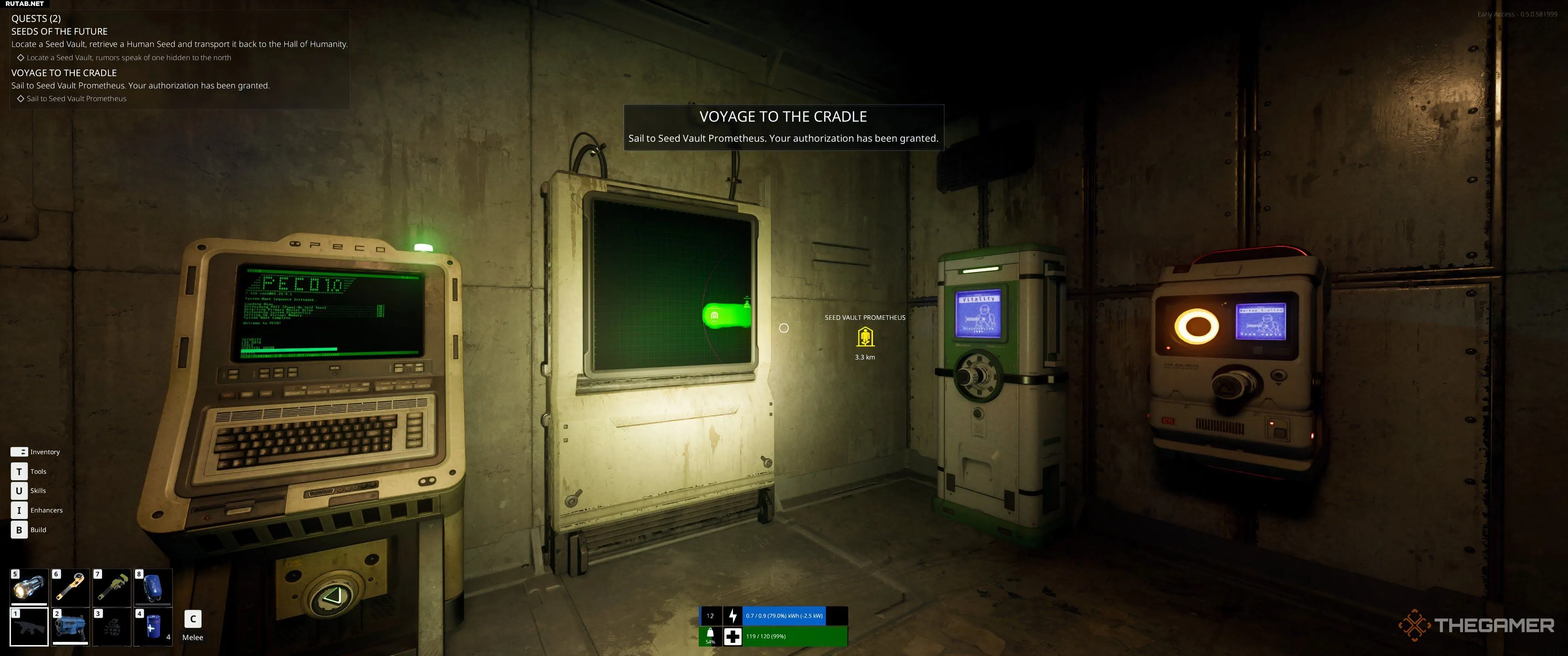 Это должно осветить комнату и включить PICO. Подойдите к компьютеру и взаимодействуйте с ним. Когда появится экран, переместите курсор вниз и выберите опцию «Получить авторизацию хранилища семян».