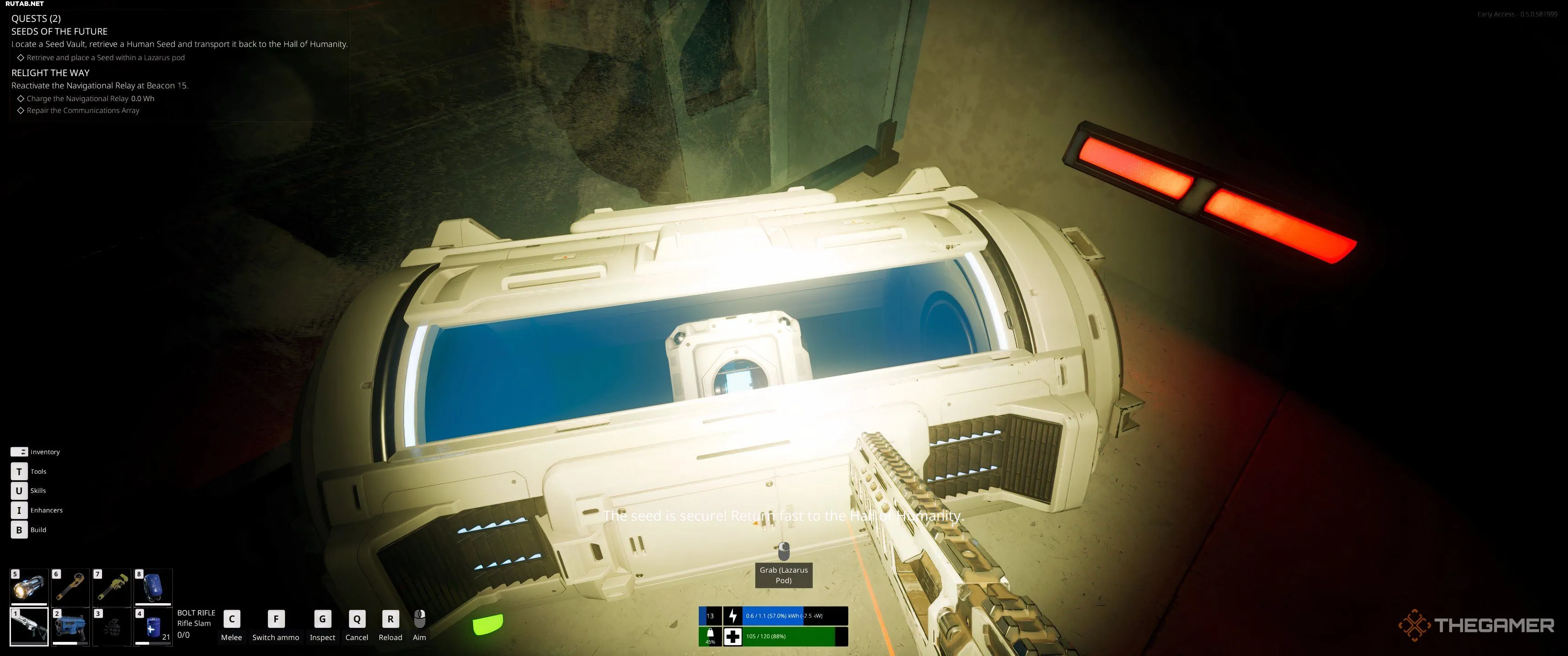 Если водоснабжение и энергия подключены правильно, капсула будет поддерживать семя на базовом уровне, и квест будет завершён.