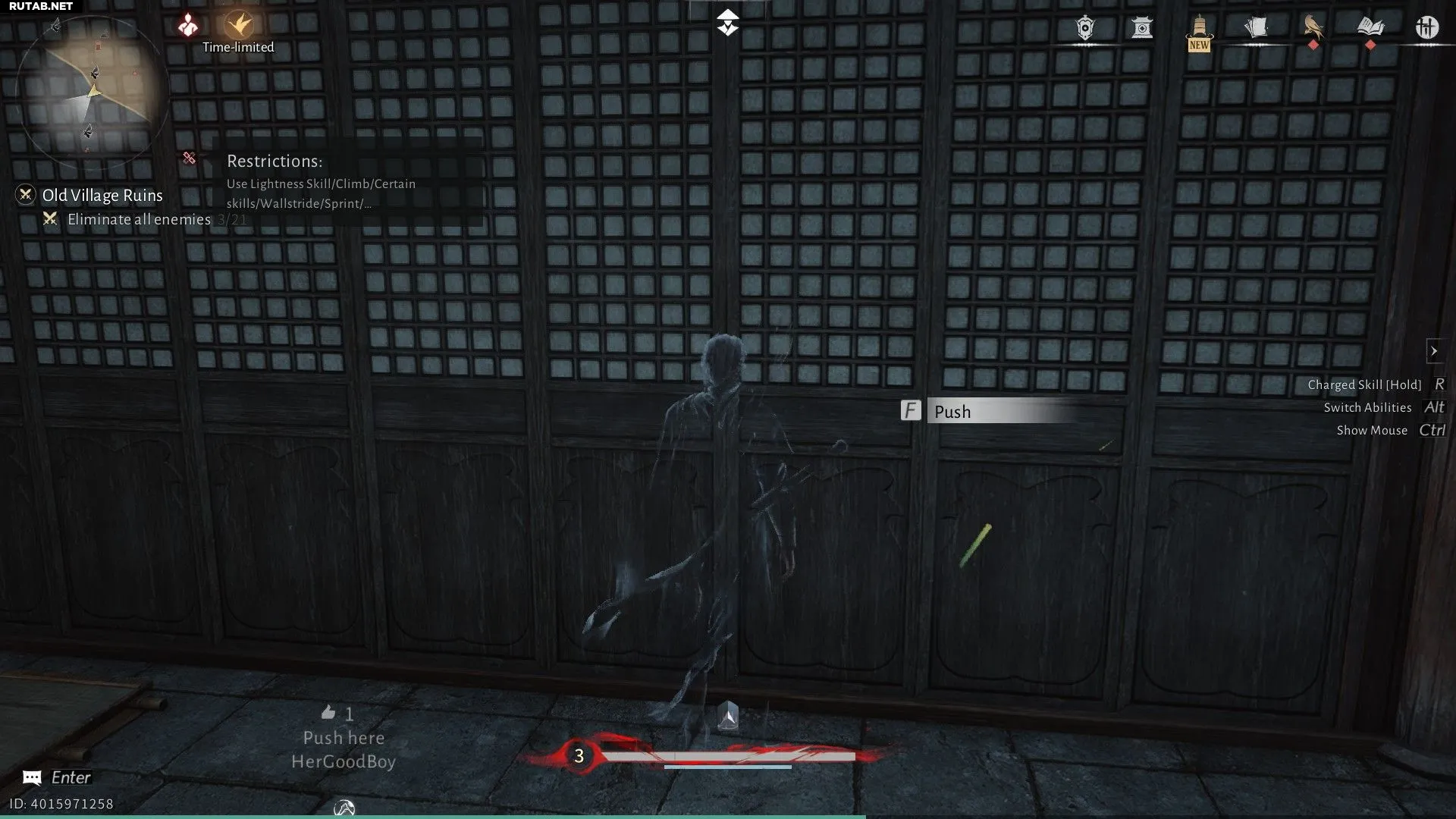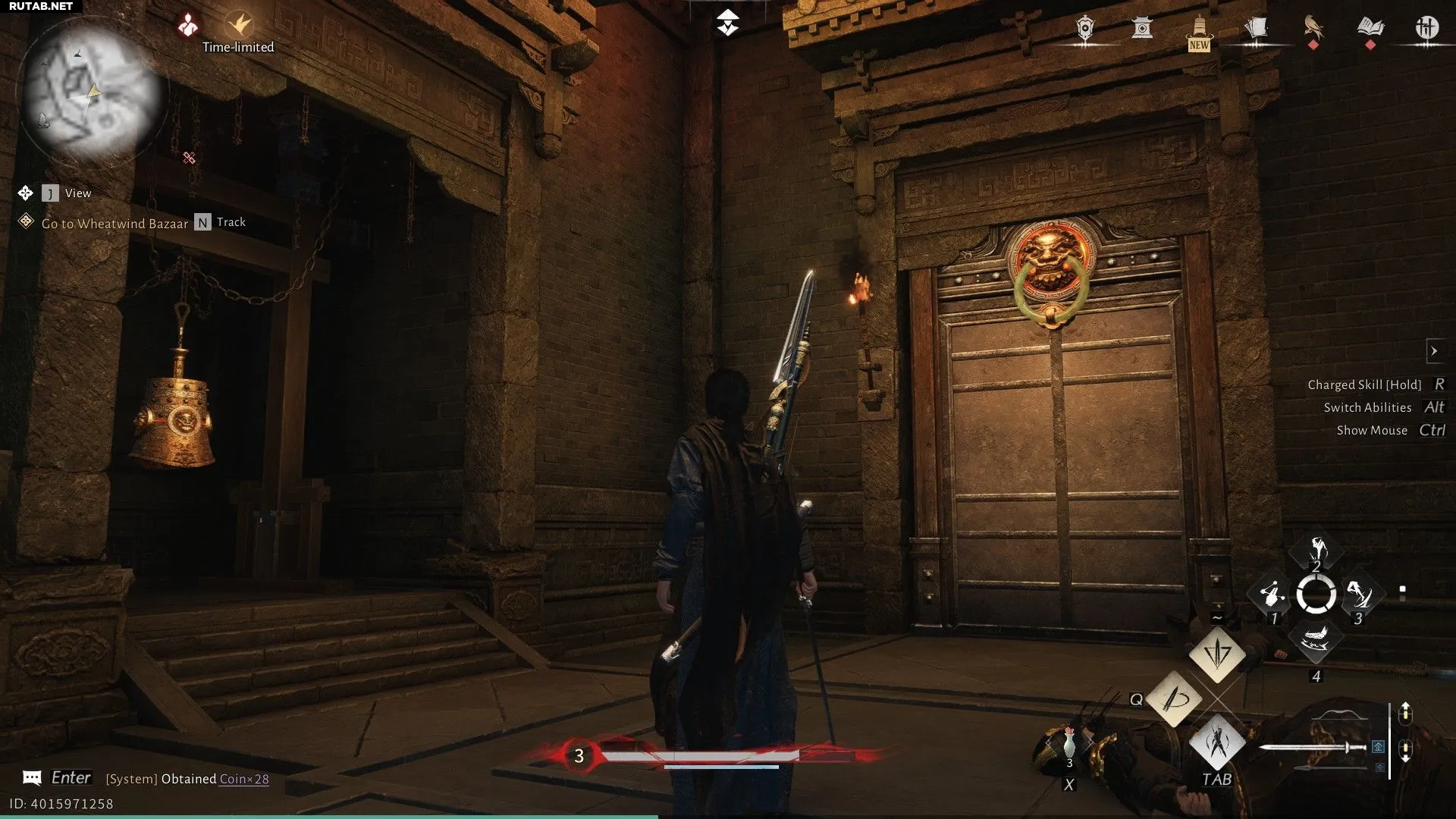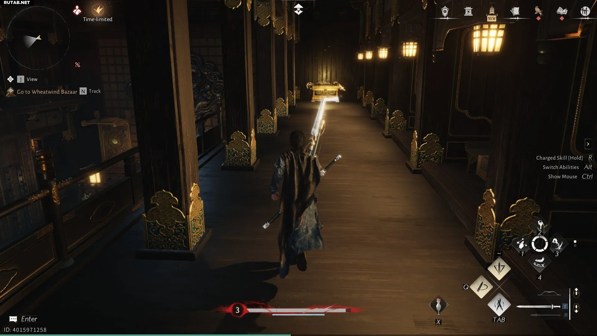 Карабкайтесь по опорным балкам вокруг зала. Начните с подъёма по меньшим статуям, чтобы добраться до лестницы. Устраните врагов на балконах, чтобы не мешали, или используйте умение «Покров Безмолвия», которое можно изучить на Лунном Пике в Цинхэ.