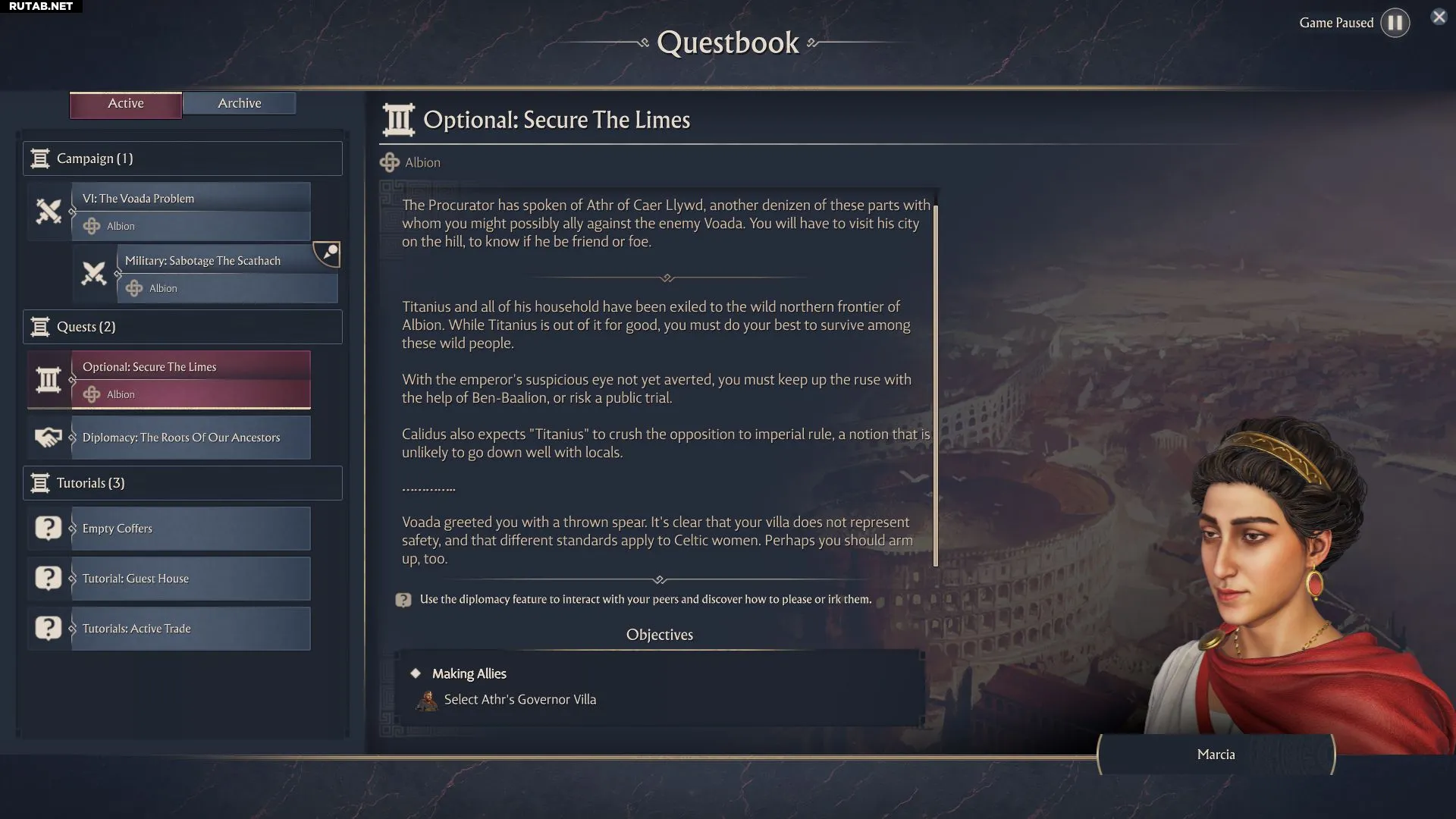 Параллельно с проблемой Воады, Калид желает укрепить Лимес, поэтому появится дополнительное задание «Укрепить Лимес».