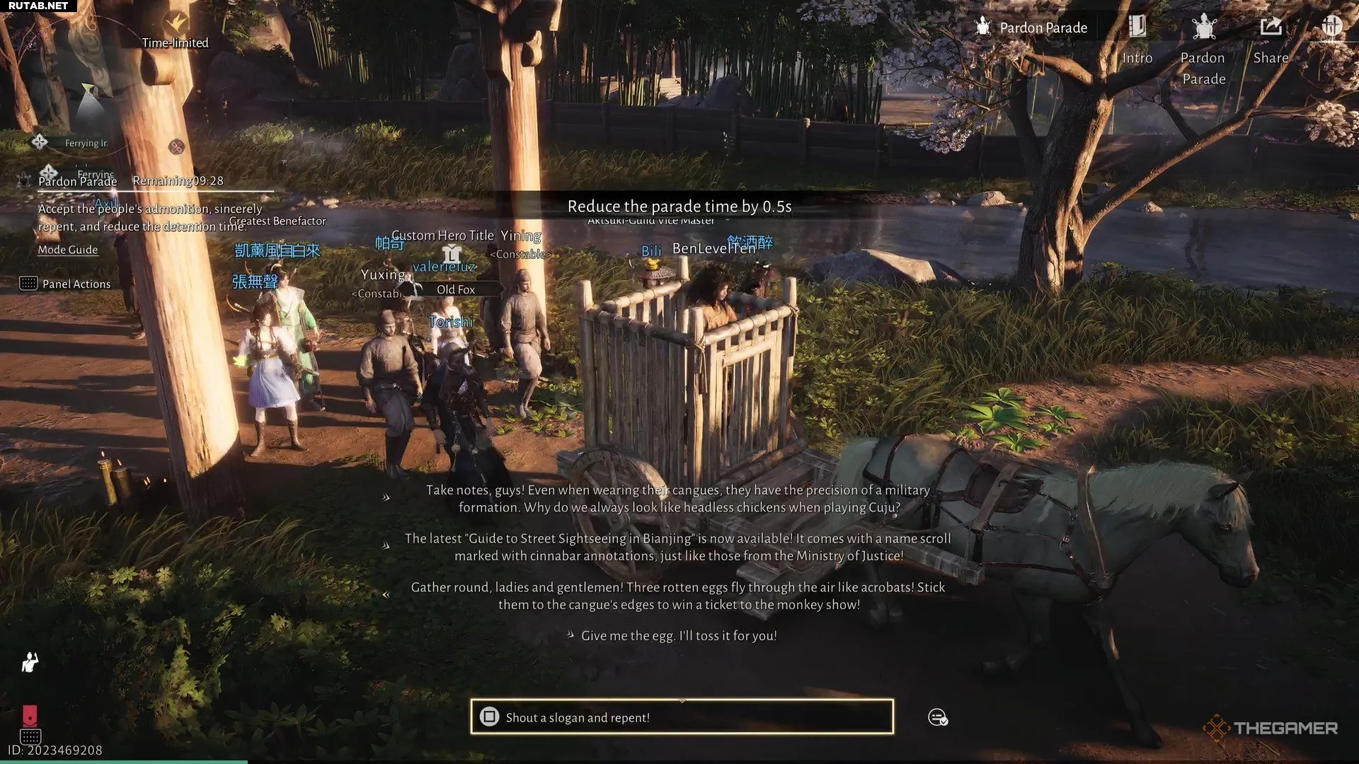 В течение десятиминутного Шествия Помилования другие игроки Where Winds Meet будут сокращать время шествия на одну или полсекунды за каждый брошенный овощ. Например, в нашем случае Шествие Помилования длилось всего 7 минут 43 секунды вместо полных десяти минут.