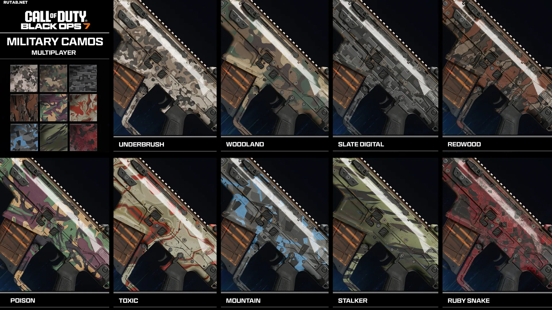 Ниже представлены все армейские, специальные и камуфляжи мастерства, доступные для разблокировки в режиме мультиплеера.